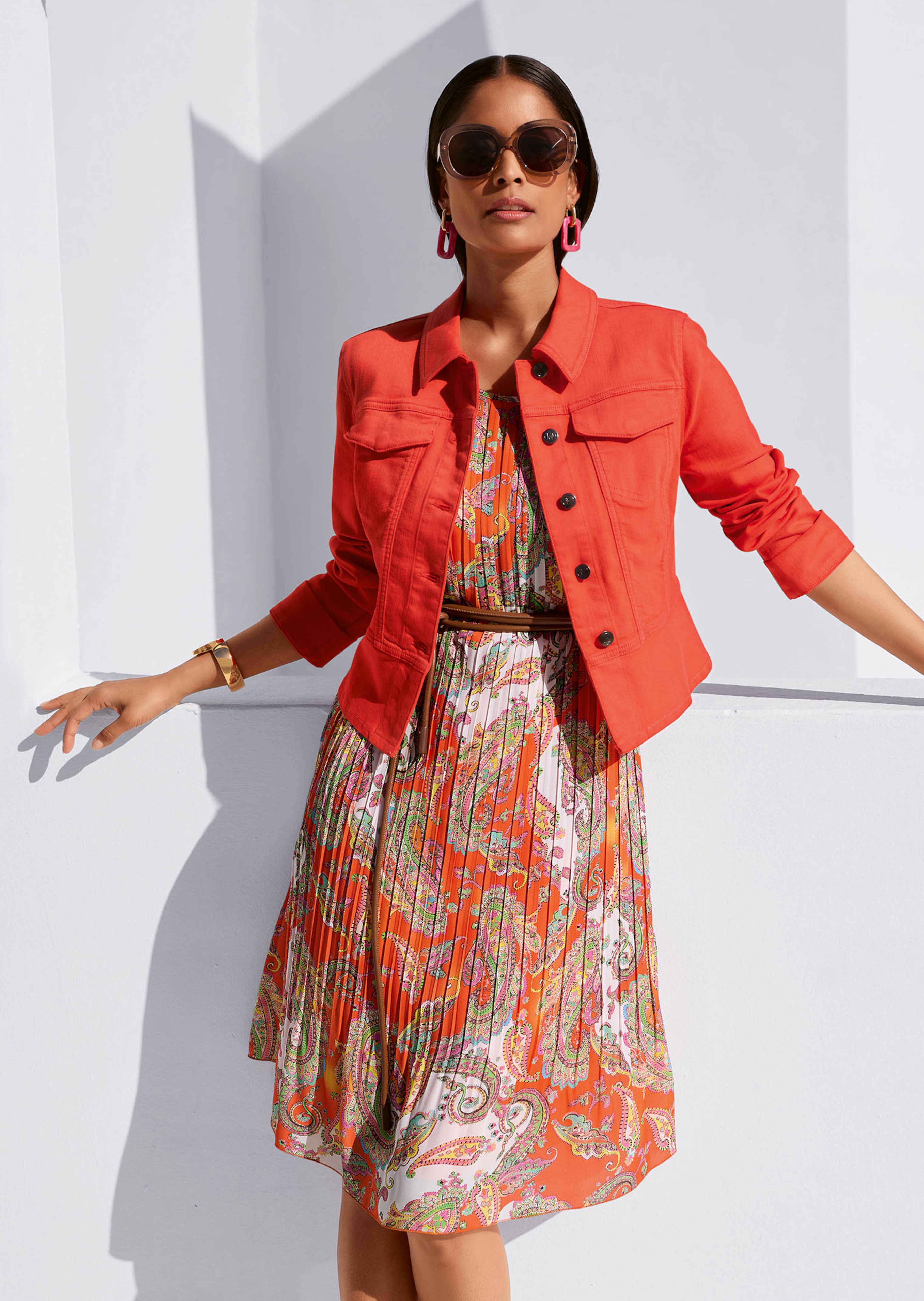 Durch ihre Farbe ein Fashion-Statement! Die Jeansjacke in angesagter Kurzform zieht mit ihrer tollen Farbe alle Blicke auf sich. Ihr weicher Baumwoll-Mix trägt sich angenehm. Wir haben sie in schlanker, leicht taillierter Kurzform mit M-Logo-Jeansknöpfen, Kettenaufhänger und kleinen Ärmelschlitzen gestaltet.
