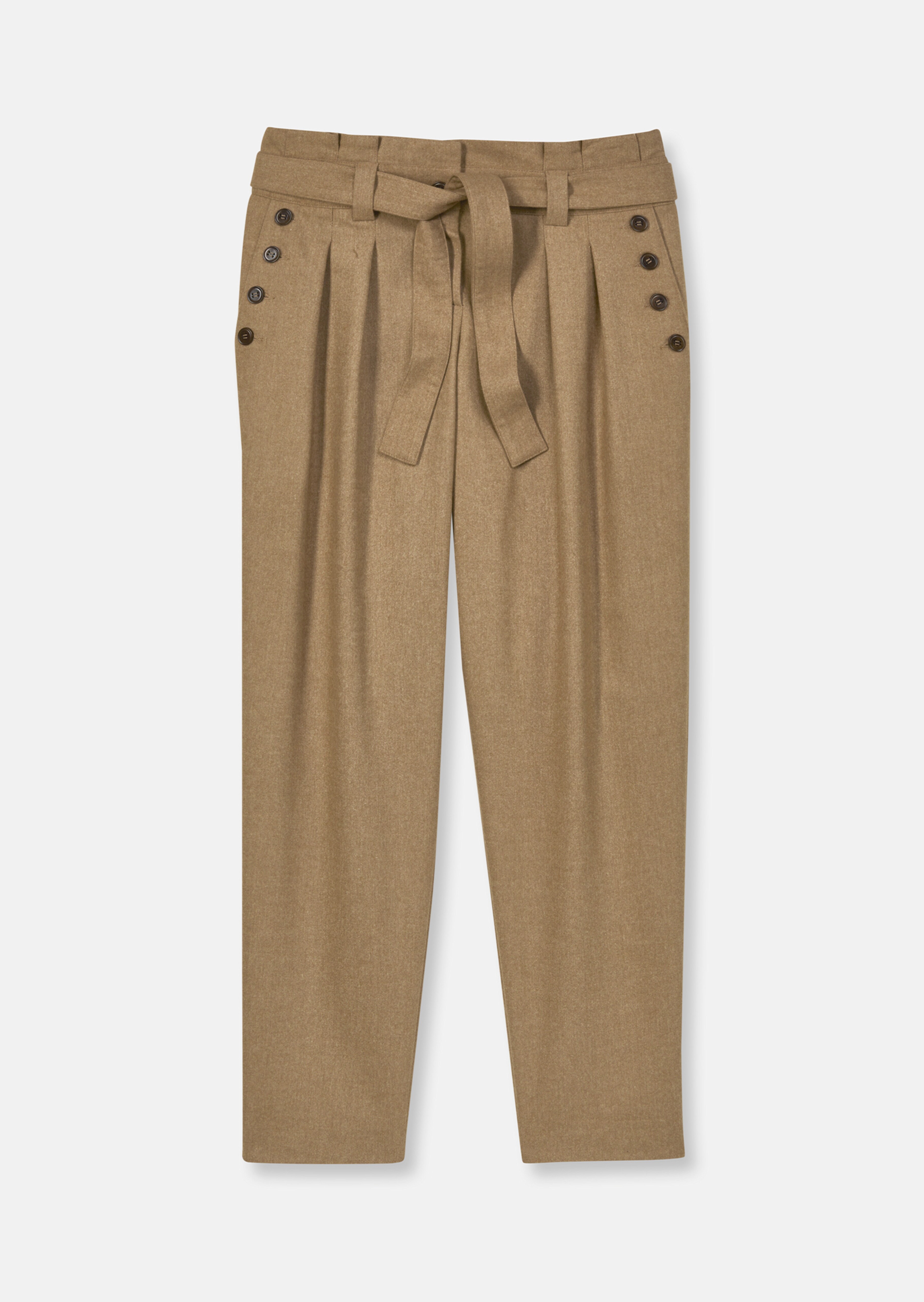 Die neue Mode liebt den lässigen Auftritt und steht für ein unbeschwertes Lebensgefühl. In trageangenehmer Garnmischung, zertifiziert nach Standard 100 by OEKOTEX®, zeigt sich die Hose im trendigen Paperbag-Style. Der hohe Bund mit Gürtelschlaufen, Hornoptik Knopf und Bindeband ist stiltypisch in Falten gelegt und sorgt für eine bequeme Hüftweite. Die gerade Form mit Schubtaschen, die mit Hornoptik Knöpfen geschmückt sind, und rückseitigen Paspeltaschen schenkt ausreichend Stauraum.
