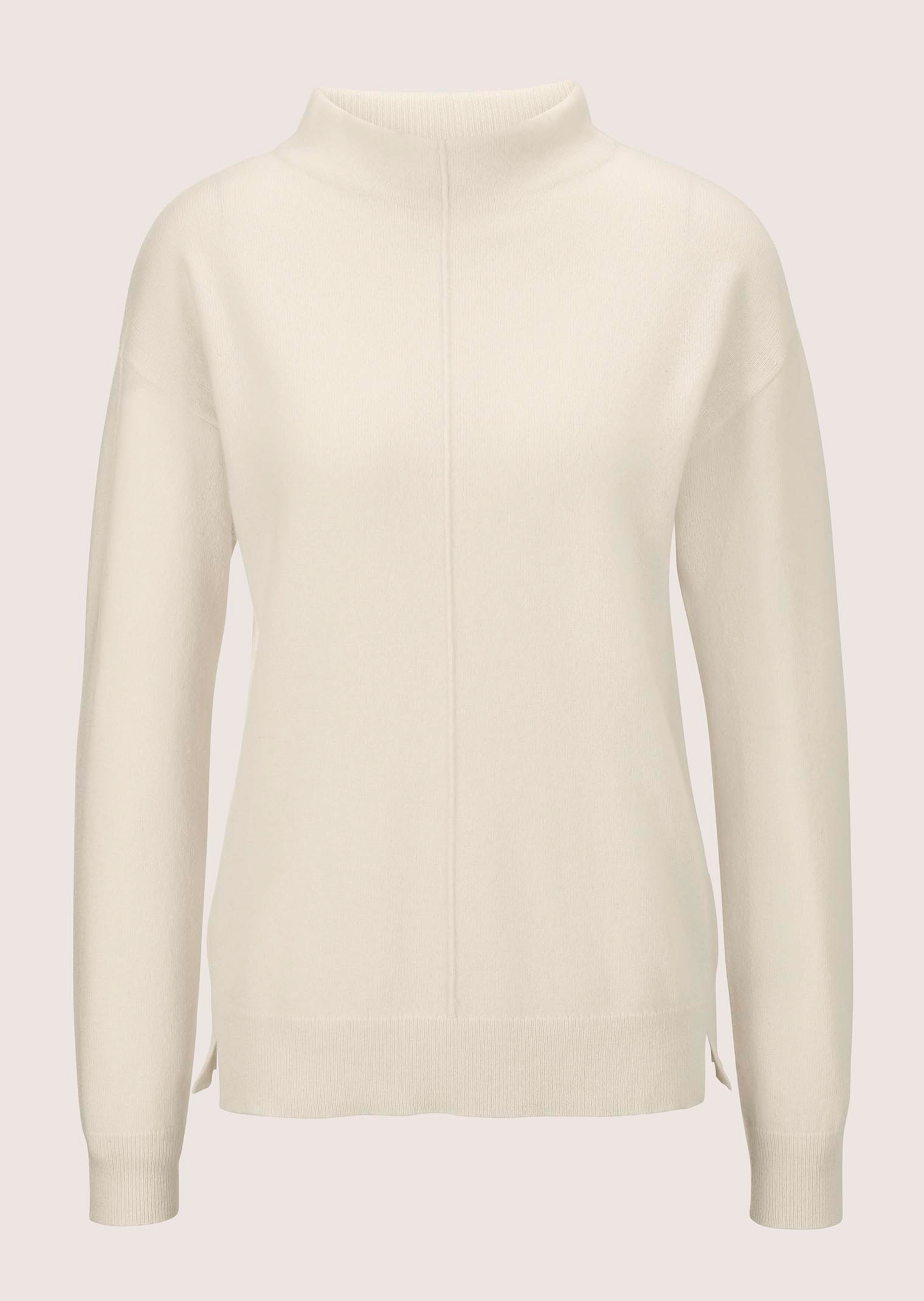 Pluizig zacht natuurgaren in exquise kwaliteit van 'Good Cashmere'. Onovertrefbaar zacht op de huid, met opstaande kraag en splitjes opzij. Naden aan de voor- en achterkant zetten decoratieve accenten, terwijl de zoom en de lange mouwen door mooi in model blijvende ribtricot worden omlijst.