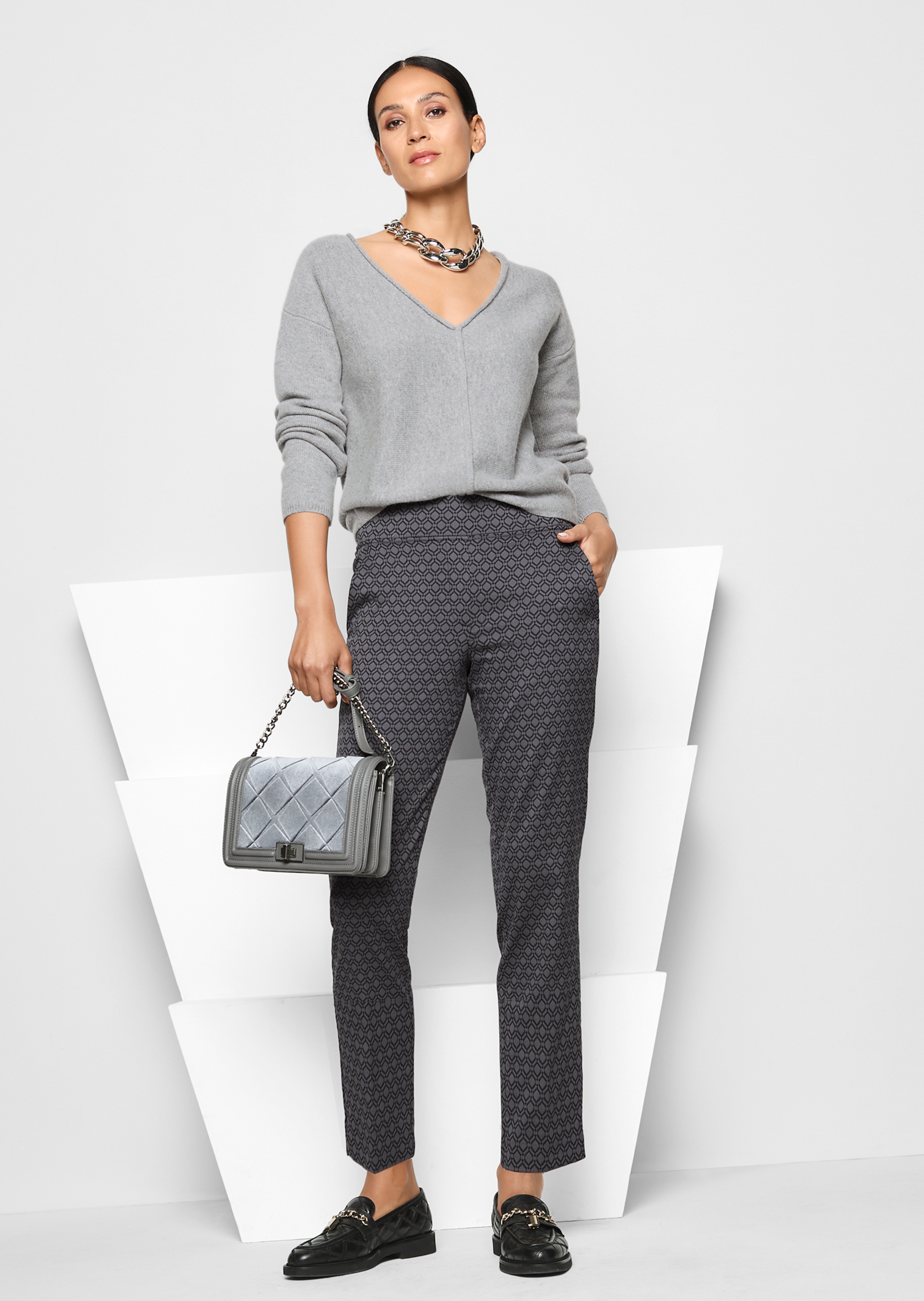 Fil naturel mélangé haut de gamme avec du cachemire Good-Cashmere. Agréable matière duveteuse. Grande encolure en V rehaussée d'un fin bord roulotté qui se prolonge en un pli nervure devant. Manches longues avec bords-côtes d'une tenue irréprochable.