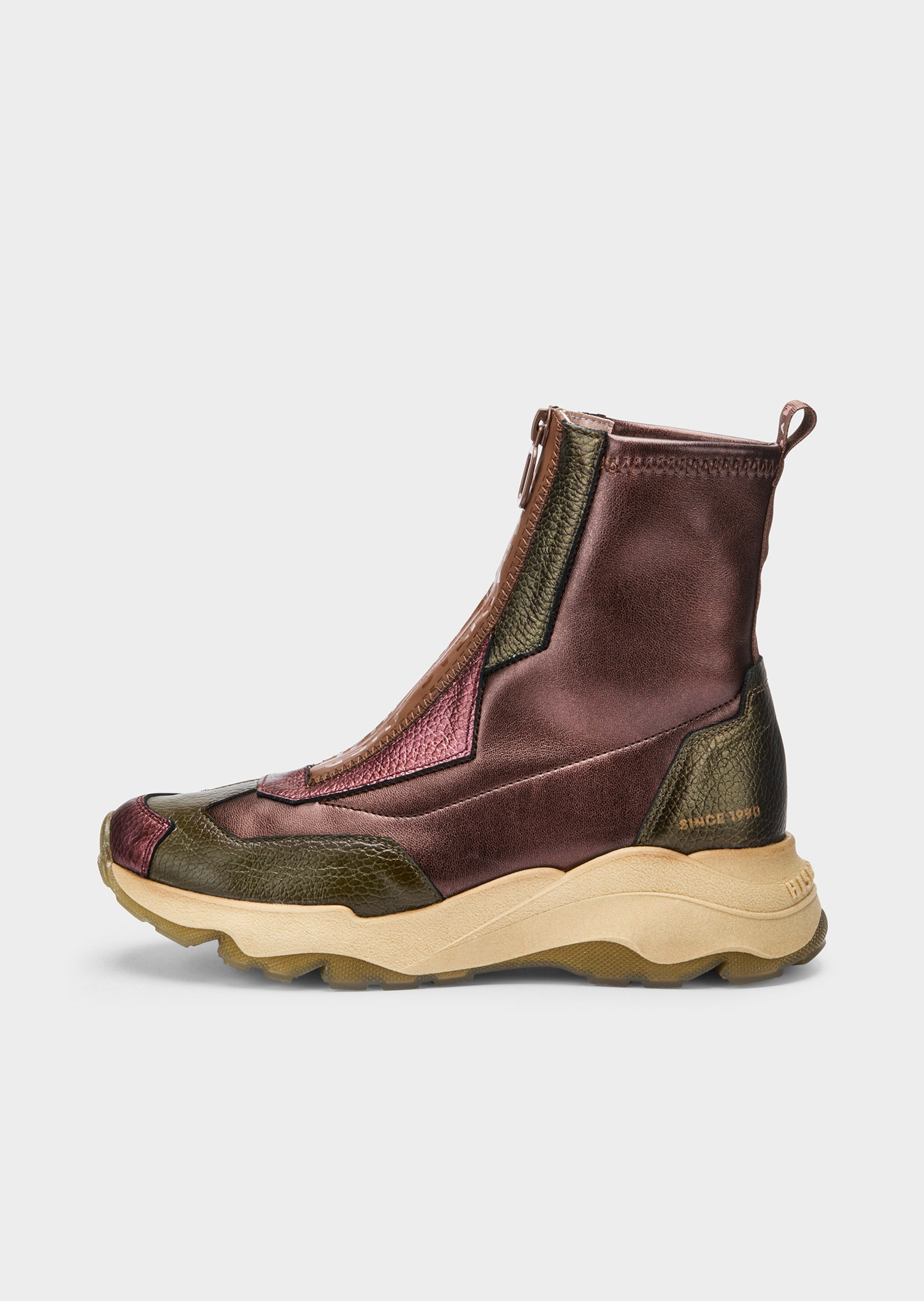 HISPANITAS. Cuir et tissu extensible. Faciles à chausser, avec zip et passant. Première échangeable. Belle semelle bicolore.