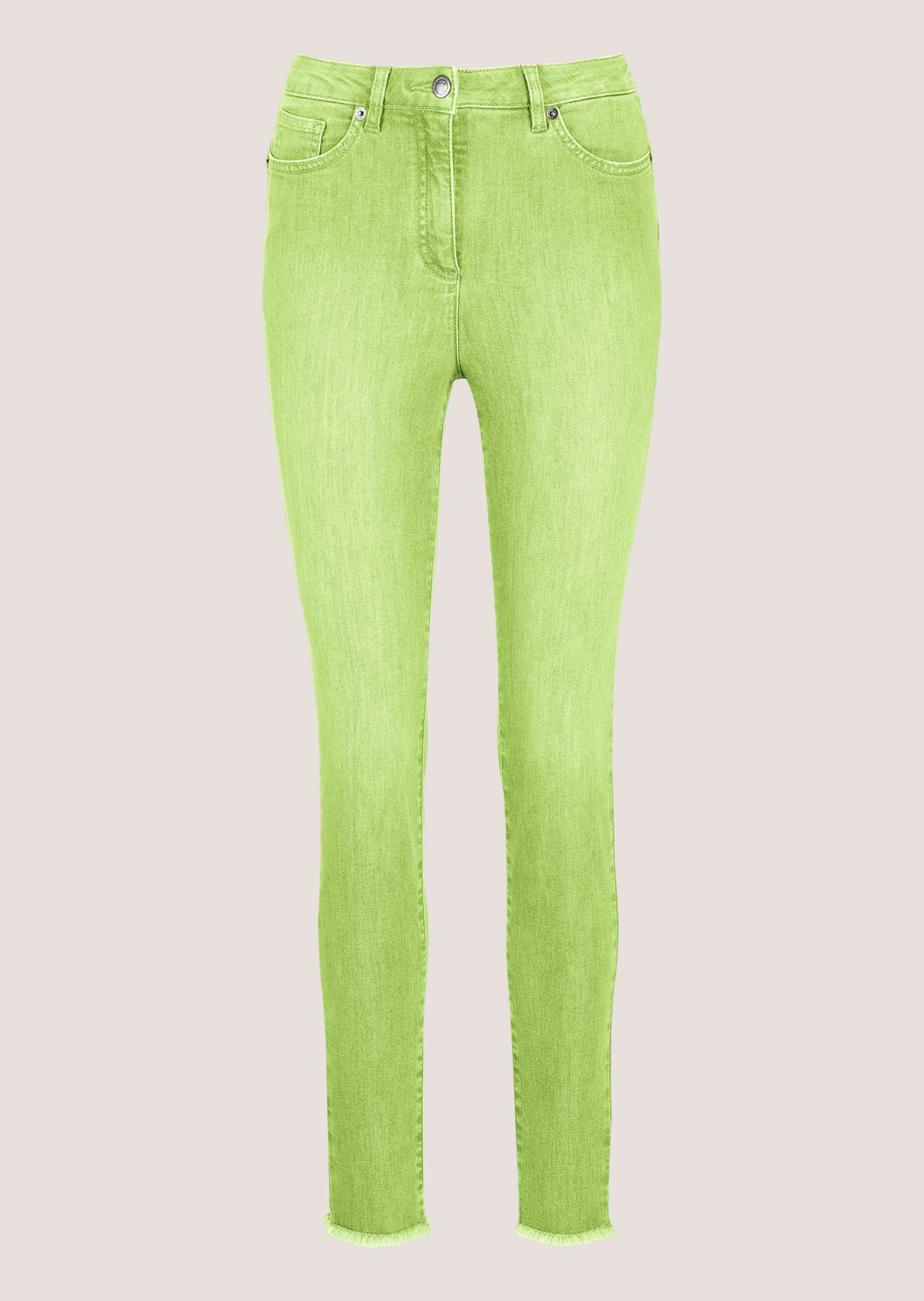 Coupe Skinny Fit. 5 poches, logo, passants de ceinture et franges au bas des jambes.