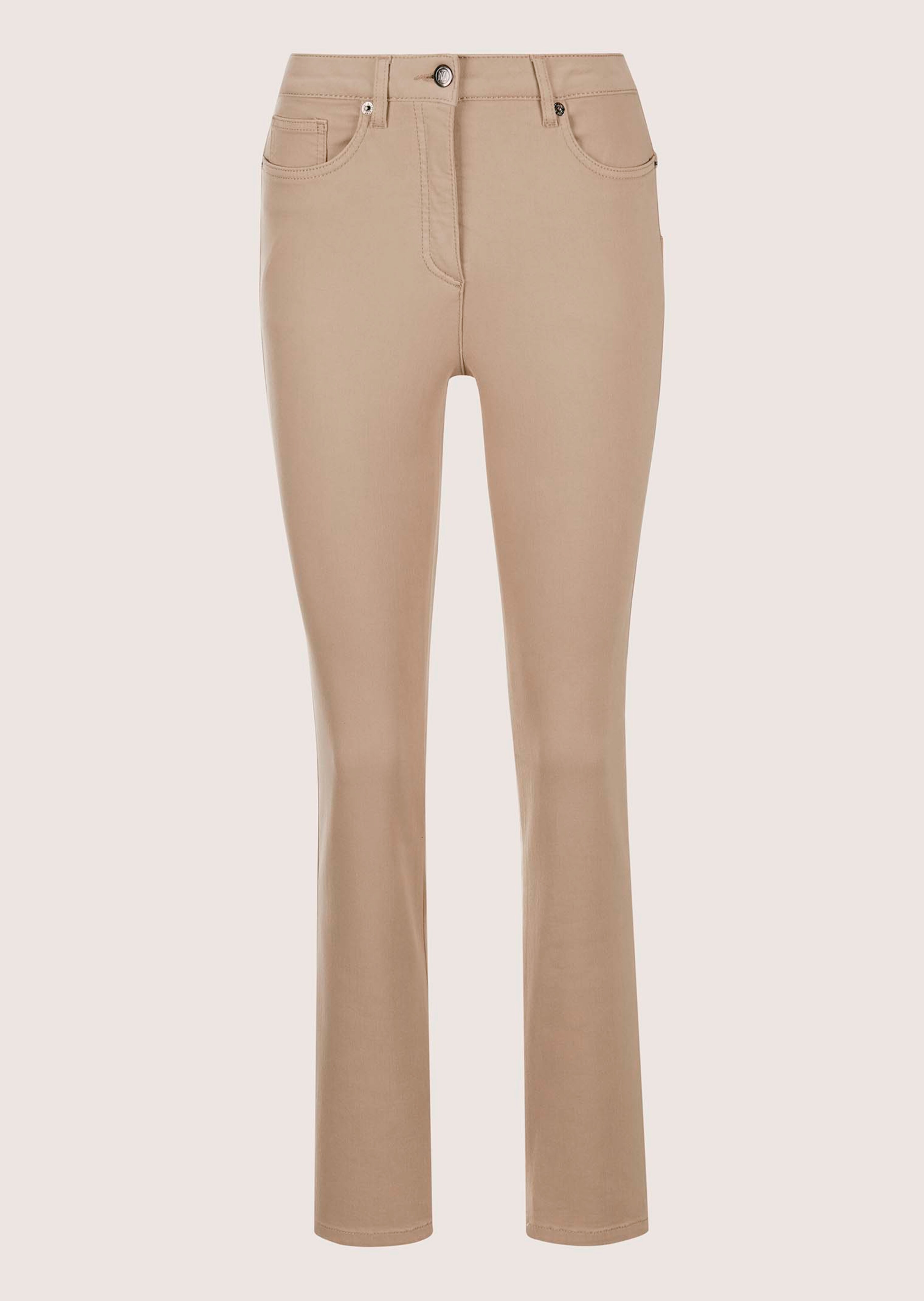 5-pocket shape in cotton stretch. Contour waistband with belt loops for perfect comfort.