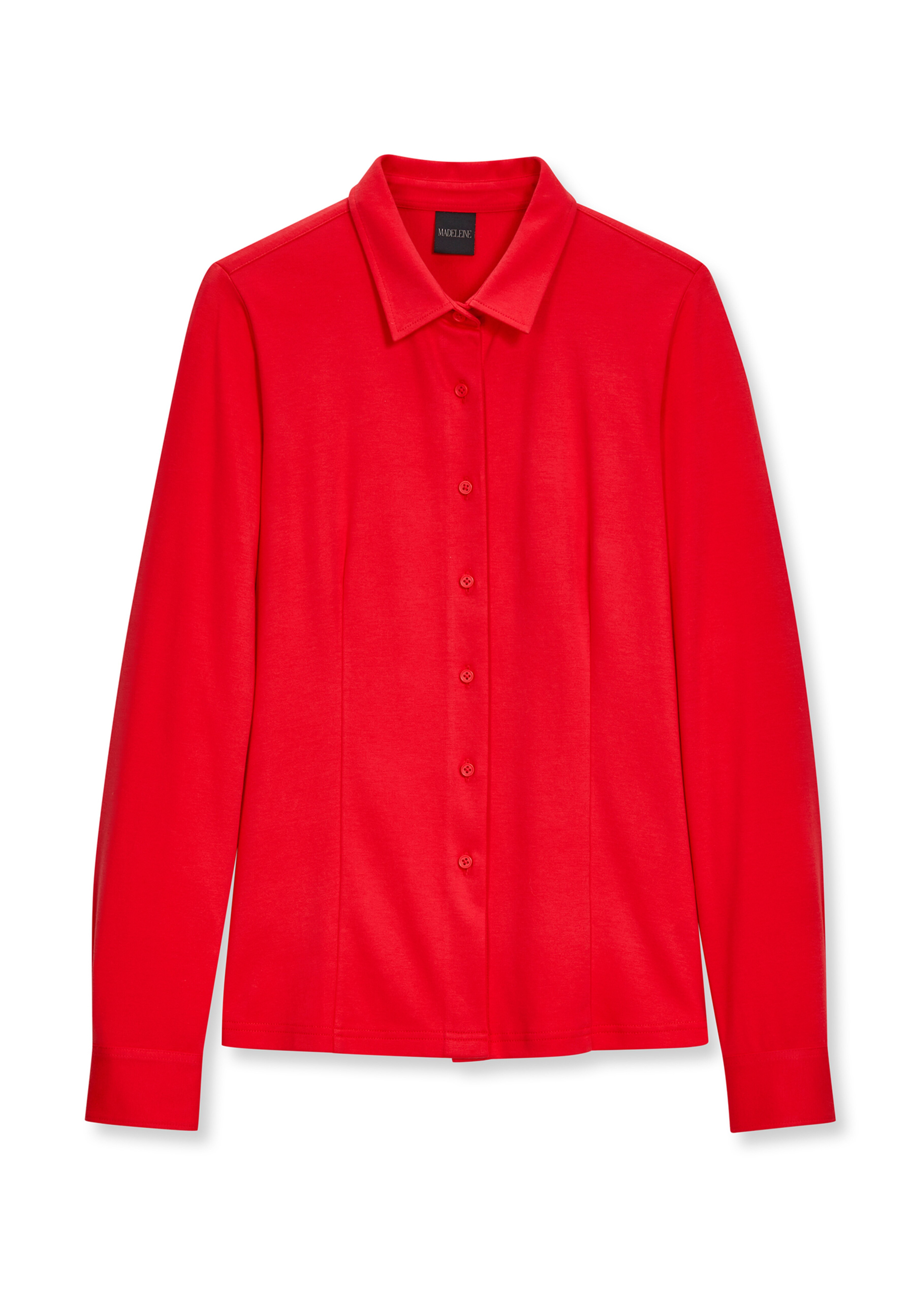 Made of comfortable jersey. Classic, timeless shirt in fitted design with shirt collar, long sleeves, buttoned cuffs, waist darts, full-length button placket and back yoke.