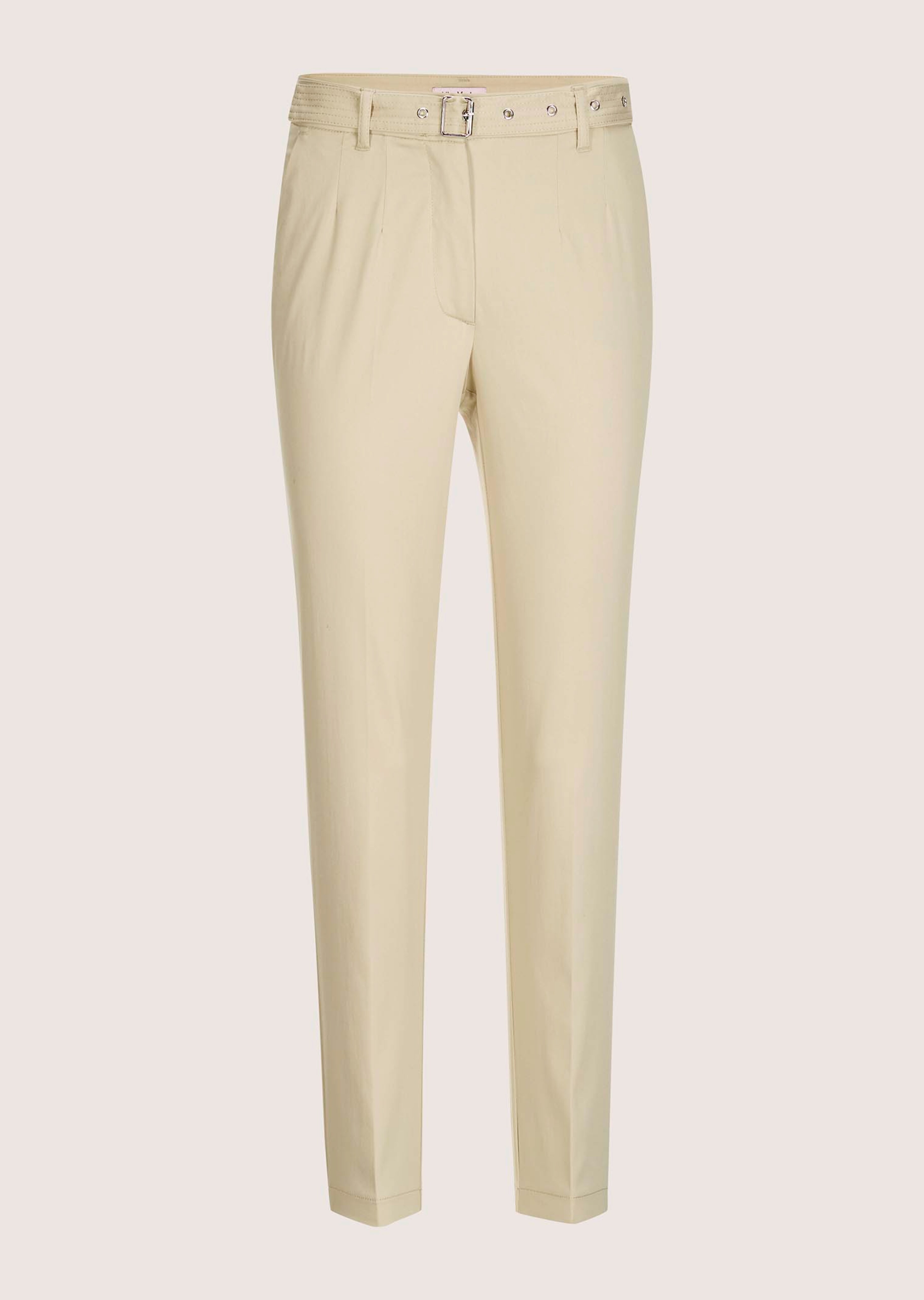 By ALBA MODA with a belt and slit pockets. Straight waistband with belt loops. With button and zip. Straight fit.