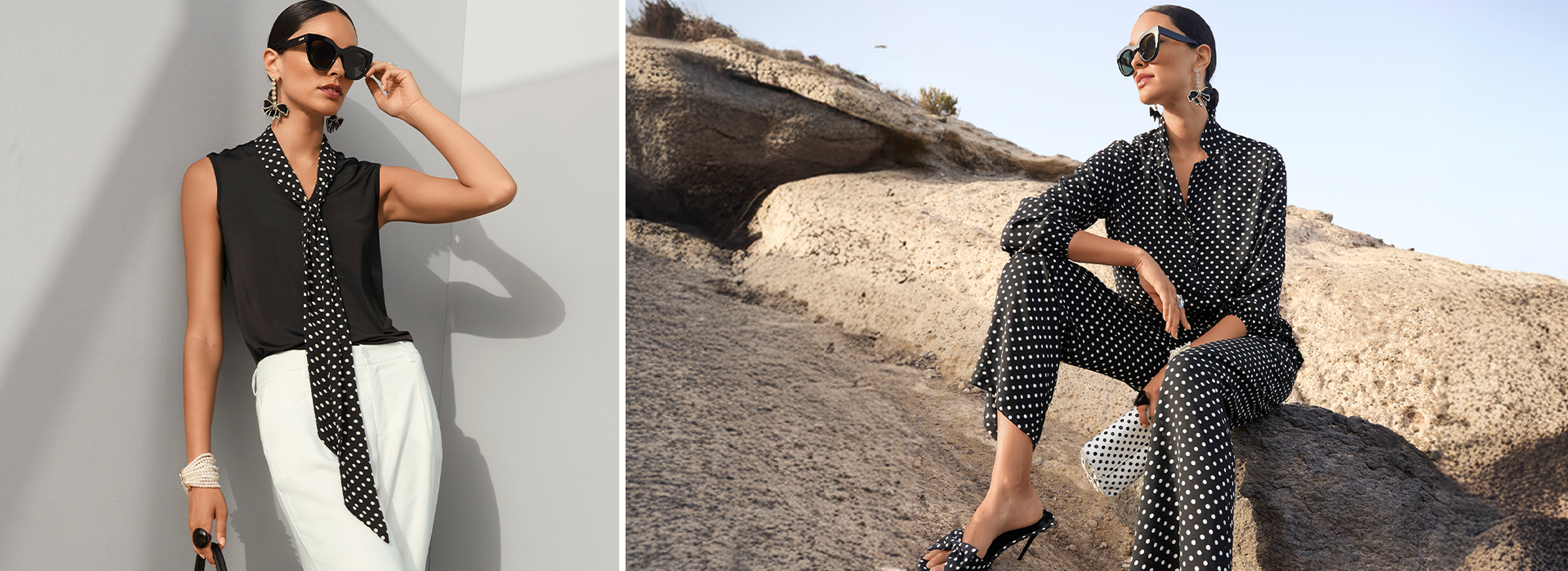 Verspielt, stilvoll und überraschend vielseitig: Punkte setzen modische Statements mit Leichtigkeit. Ob als feines Detail oder als mutiges Muster – sie verleihen jedem Outfit Charakter. In Kombination mit schlichten, einfarbigen Pieces entsteht ein Look, der modern wirkt und dennoch zeitlos bleibt.