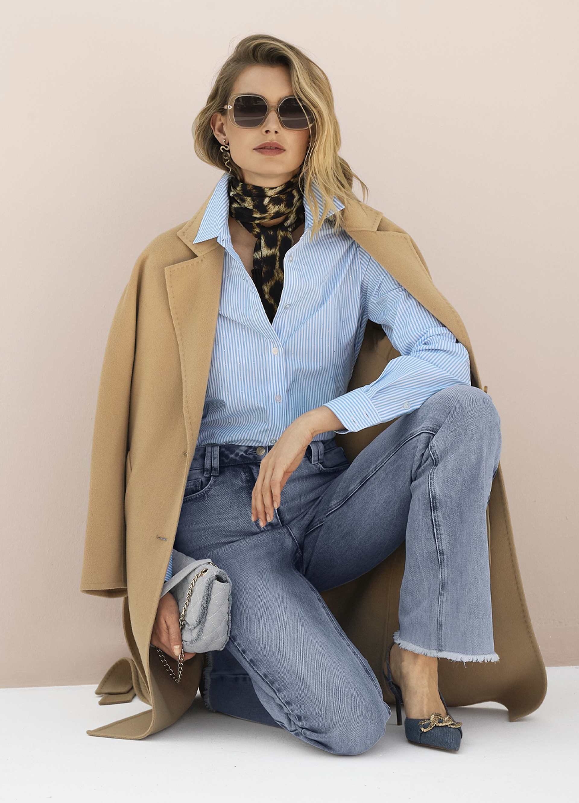 Styling-Tipp: Accessoires in Gold oder Cognac unterstreichen den warmen Unterton von Beige und bringen das Blau noch mehr zum Strahlen.