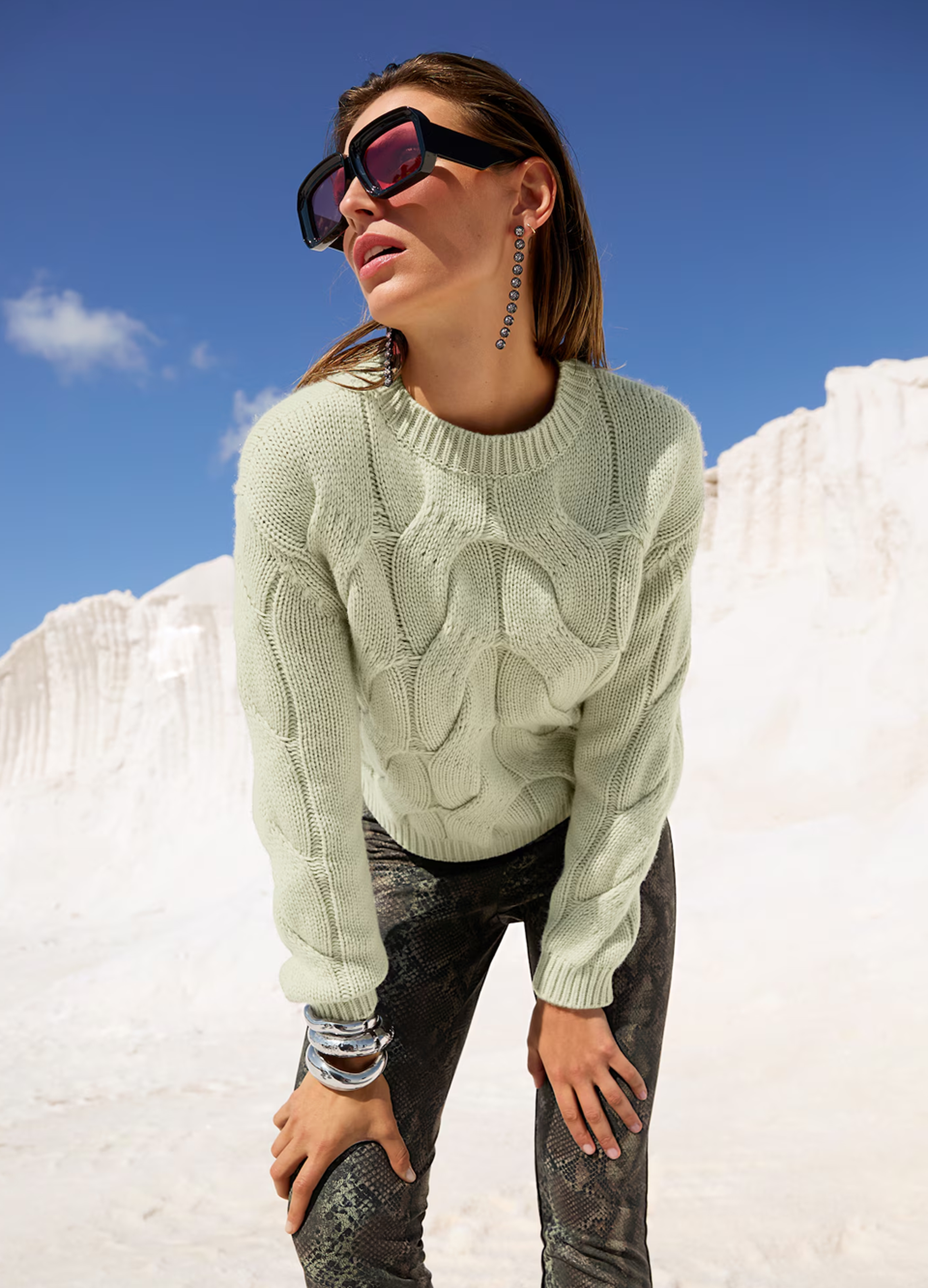 Styling-Tipp: Ein salbeigrüner Pullover zur graufarbenen Hose oder ein Mantel in hellem Grün mit Accessoires in Elfenbein – ein Look, der Leichtigkeit ausstrahlt und sich perfekt für den Übergang eignet.