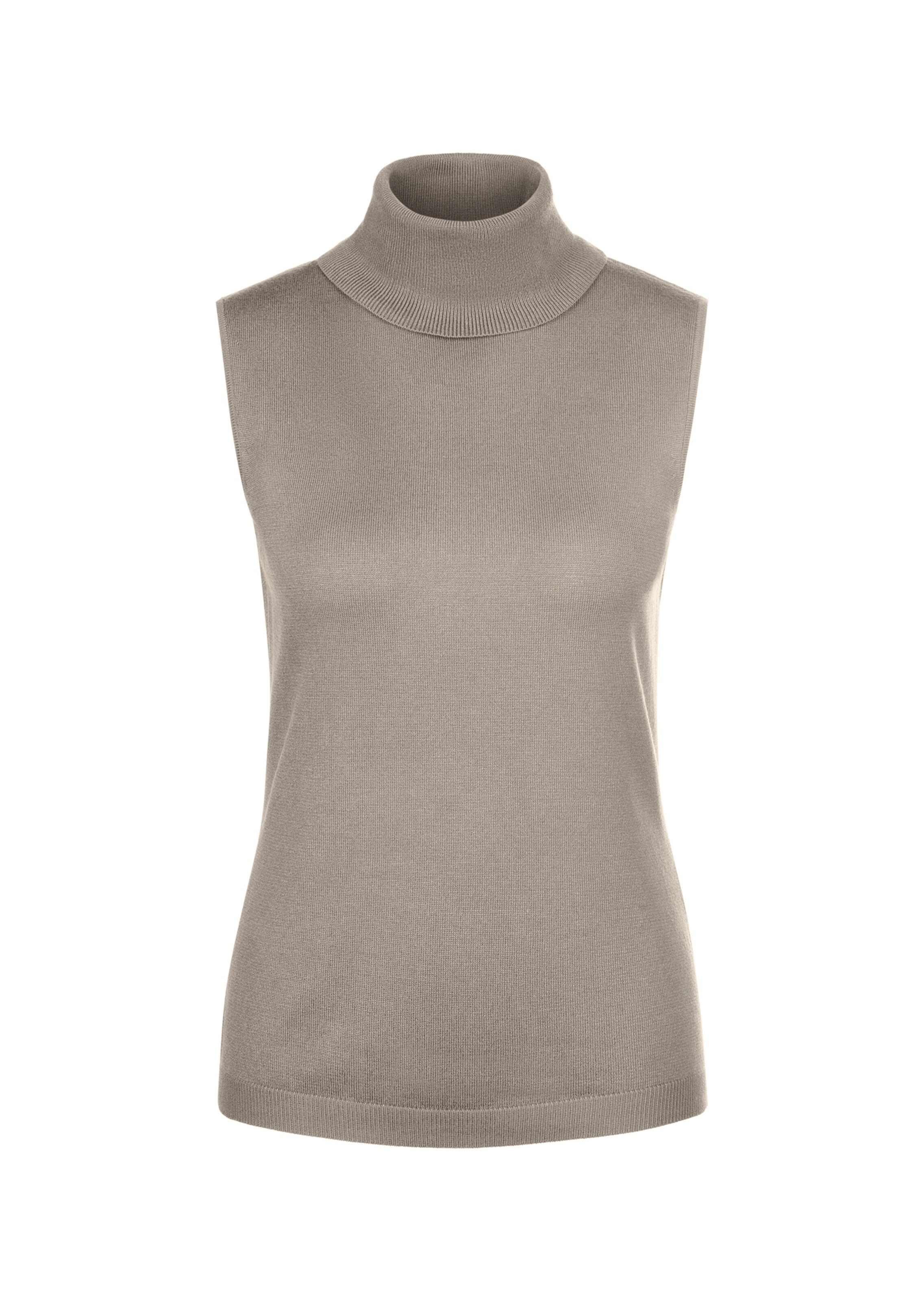 Als Unterzieher und Solist ist dieser Pullover ein edler Favorit! Der formbeständige Viskose-Stretch schmiegt sich der Silhouette ideal an, ist tragefreundlich und leicht zu pflegen. Die ärmellose Form mit Rollkragen ist der ideale Basic-Pullover für unzählige Kombi-Variationen!