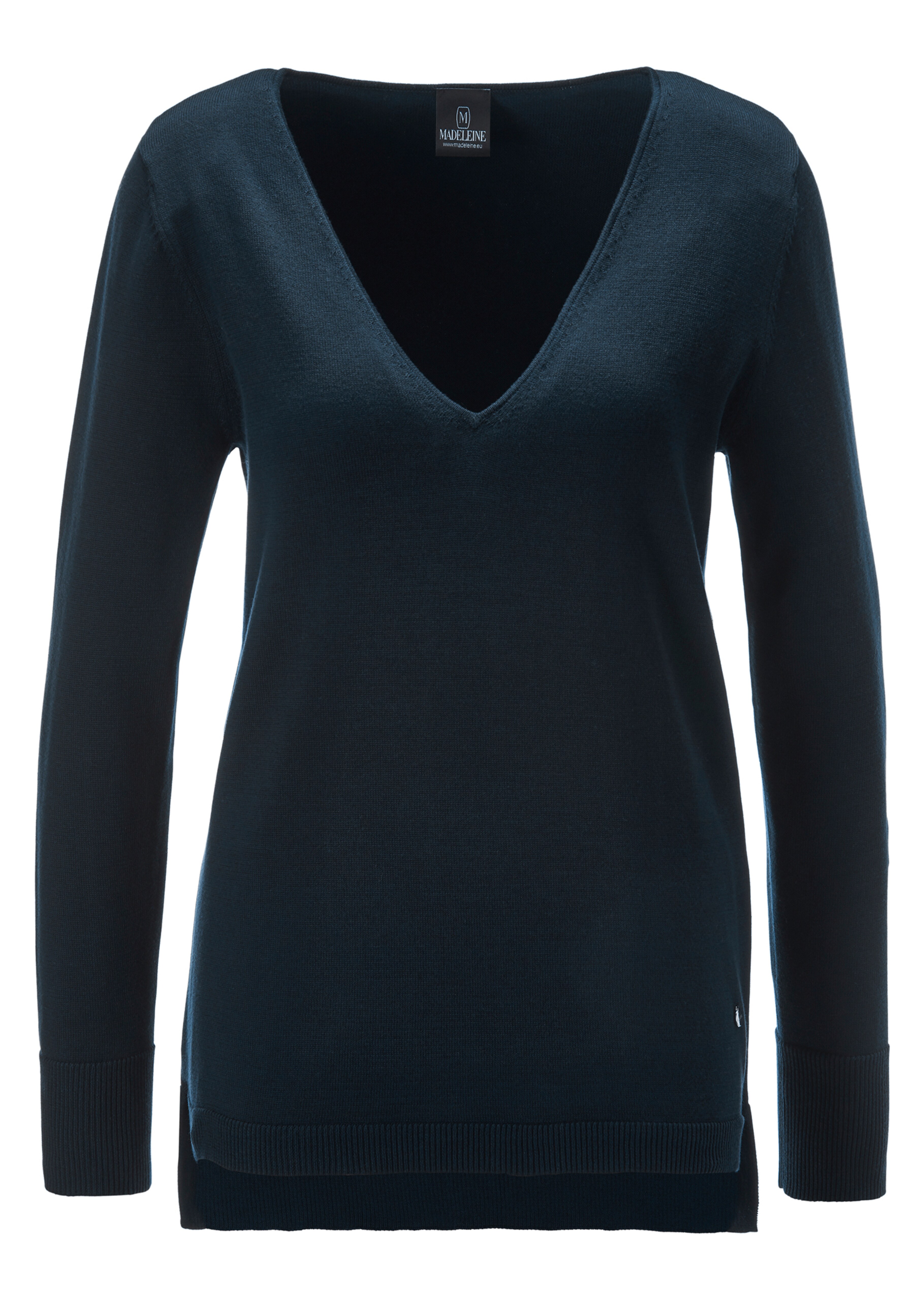 Der Sommer verlangt nach Basics mit luftig leichtem Komfort. Dieser Pullover aus edler Supima-Cotton wird dieser Anforderung mehr als gerecht. Die langstapelige Baumwollfaser ist weicher, feiner und langlebiger als gewöhnliche Baumwolle – den Unterschied spüren Sie beim Tragen und nach der Wäsche. Leicht tailliert und aufwendig fully fashioned verarbeitet zeigt sich der Baumwollpullover mit langen Ärmeln, Seitenschlitzen, kleiner M-Plakette und modisch verlängertem Rückenteil. Durch den V-Ausschnitt kommt das Dekolleté gut zur Geltung. Ein purer Strick-Stil, der Ihnen ungeahnte Möglichkeiten bietet, schmal genug ist er auch unter dem Blazer ein idealer Partner.
