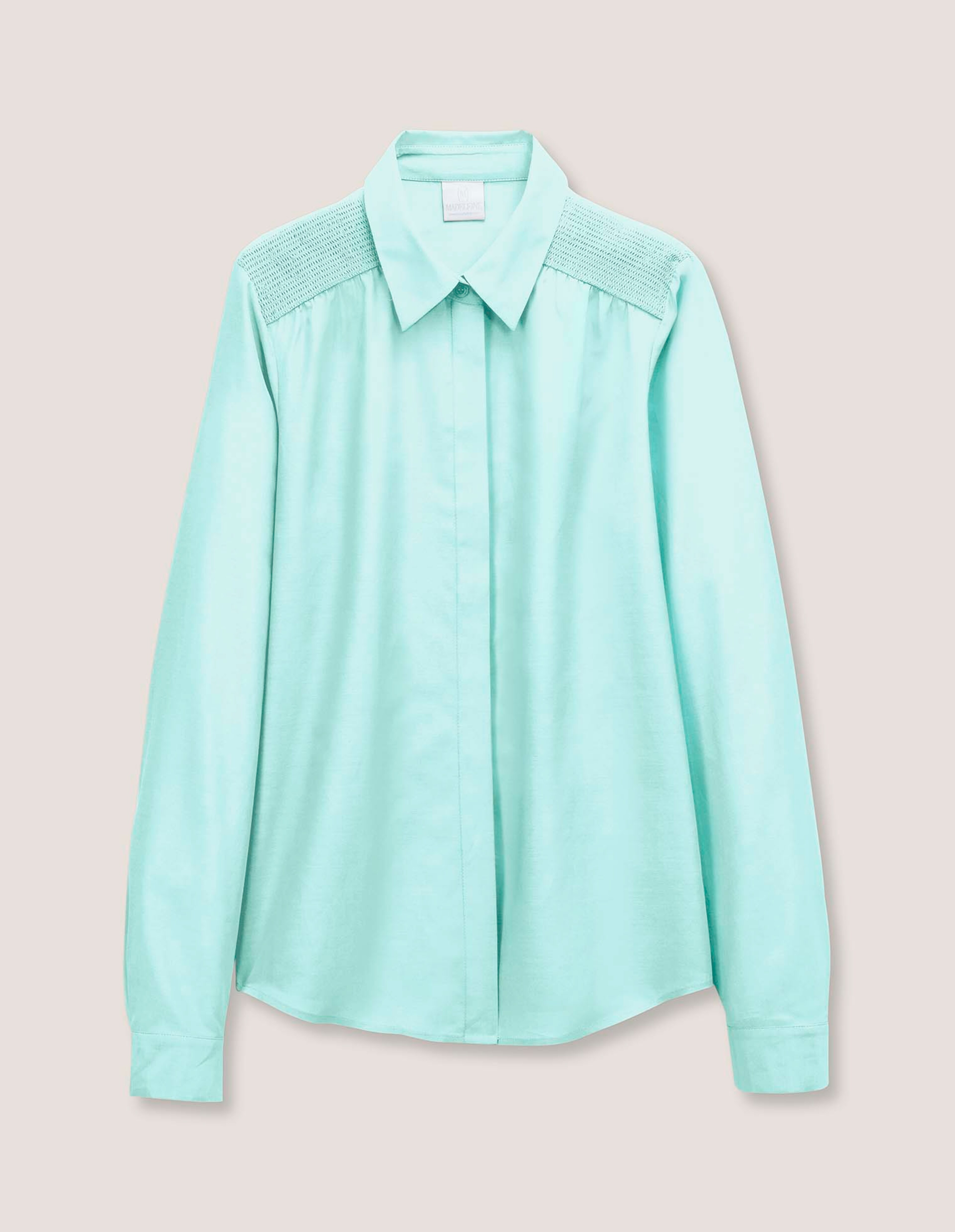 Eine Business-Favoritin, die mit femininen Details und ihrer wertvollen Qualität überzeugt. Die Bluse mit Raffung trägt sich durch den Seiden-Baumwoll-Mix so herrlich weich und zeigt einen feinen Glanz. Die Raff-Details akzentuieren modern die Schulterpasse. Wir haben sie in hochwertiger Verarbeitung mit französischen Nähten, Hemdkragen, verdeckter Knopfleiste, Langarm, Knopf-Manschetten und leicht gerundetem Saum gestaltet. Durch die klassische Farbgebung können Sie sie zu den unterschiedlichsten Partnern stylen – nicht nur im Business.