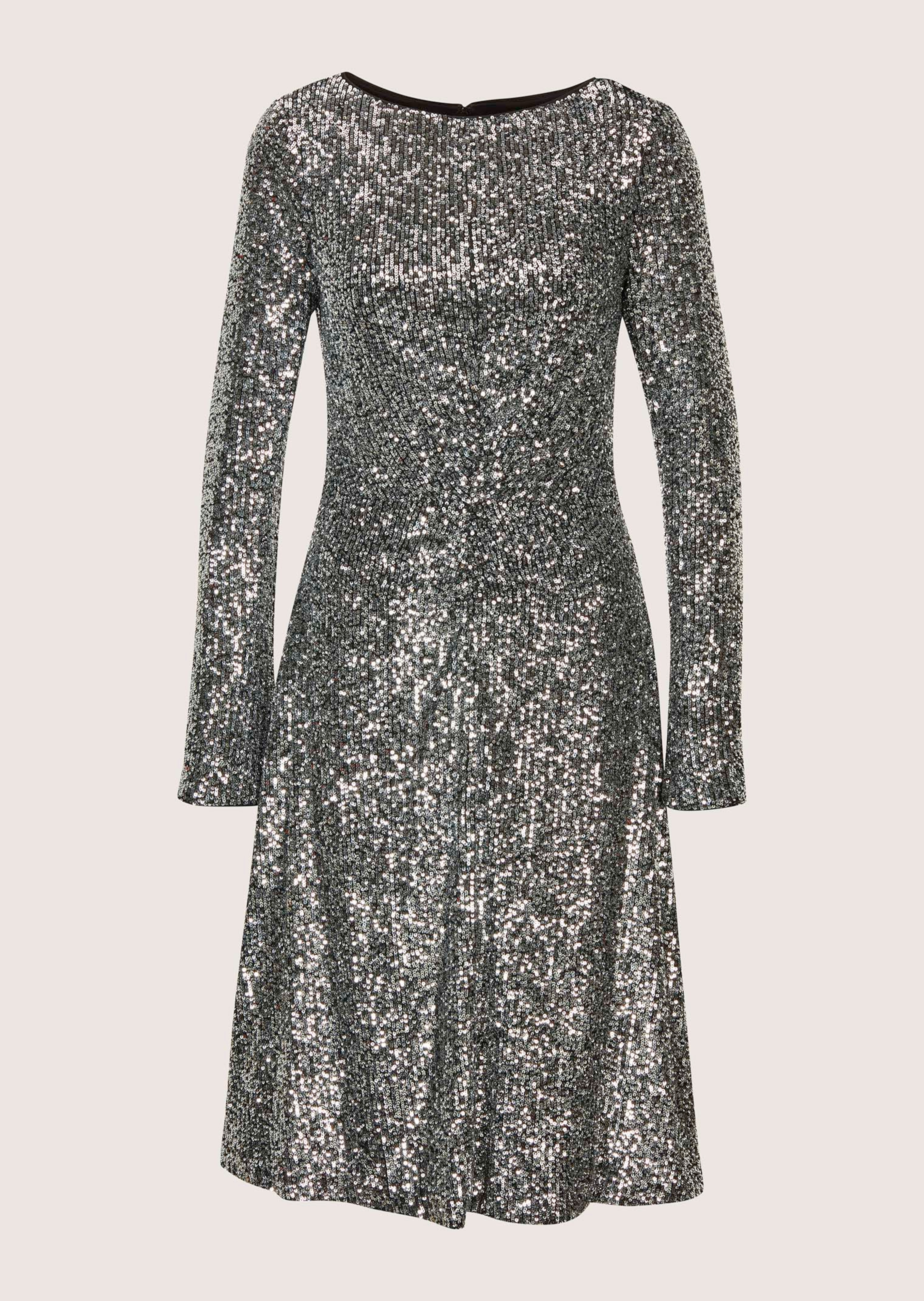 Pailletten sind zurück und verzieren hier ein besonders feminin geschnittenes Cocktailkleid. Dazu tragen die taillierte Form, der U-Boot-Ausschnitt und der ausgestellte Rockteil bei. Eyecatcher: die langen Ärmel mit auffälligem Schlitz und satinierter Paspel. Eine Naht mit dezenter Raffung im Vorderteil sorgt für einen schönen Sitz. Das Kleid ist komplett gefüttert und mit Reißverschluss in der hinteren Mitte ausgestattet.