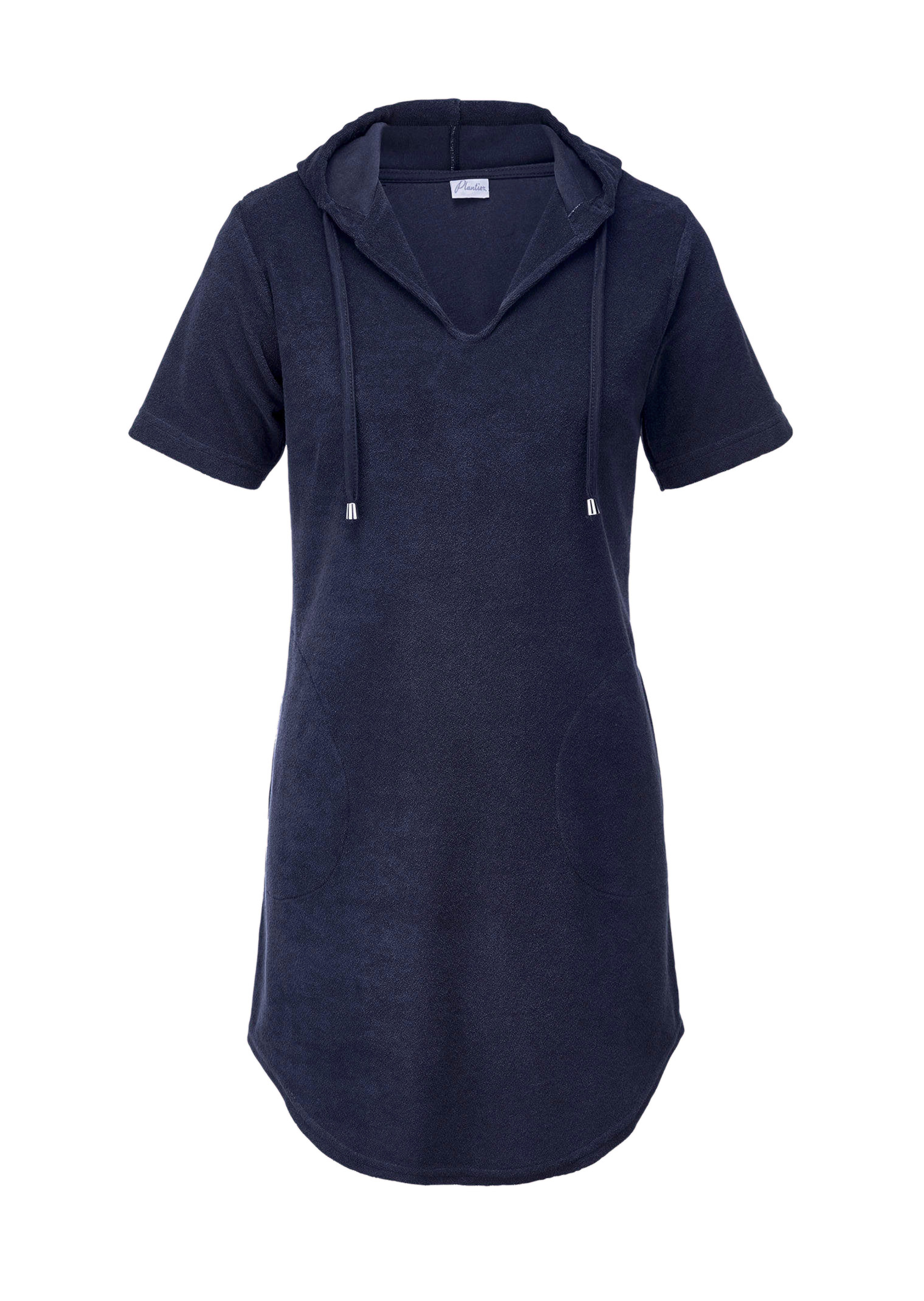 Frotteekleid von PLANTIER mit Kapuze und praktischem Kordelband – ideal für Strand, Pool oder Sauna. Seitliche Eingrifftaschen bieten Stauraum für Kleinigkeiten, der hinten etwas längere Schnitt schützt zusätzlich. Dank des hohen Baumwollanteils nimmt der weiche Frotteestoff Feuchtigkeit besonders gut auf. Vielseitig einsetzbar, eignet sich das Modell auch als Umziehhilfe nach dem Schwimmen.