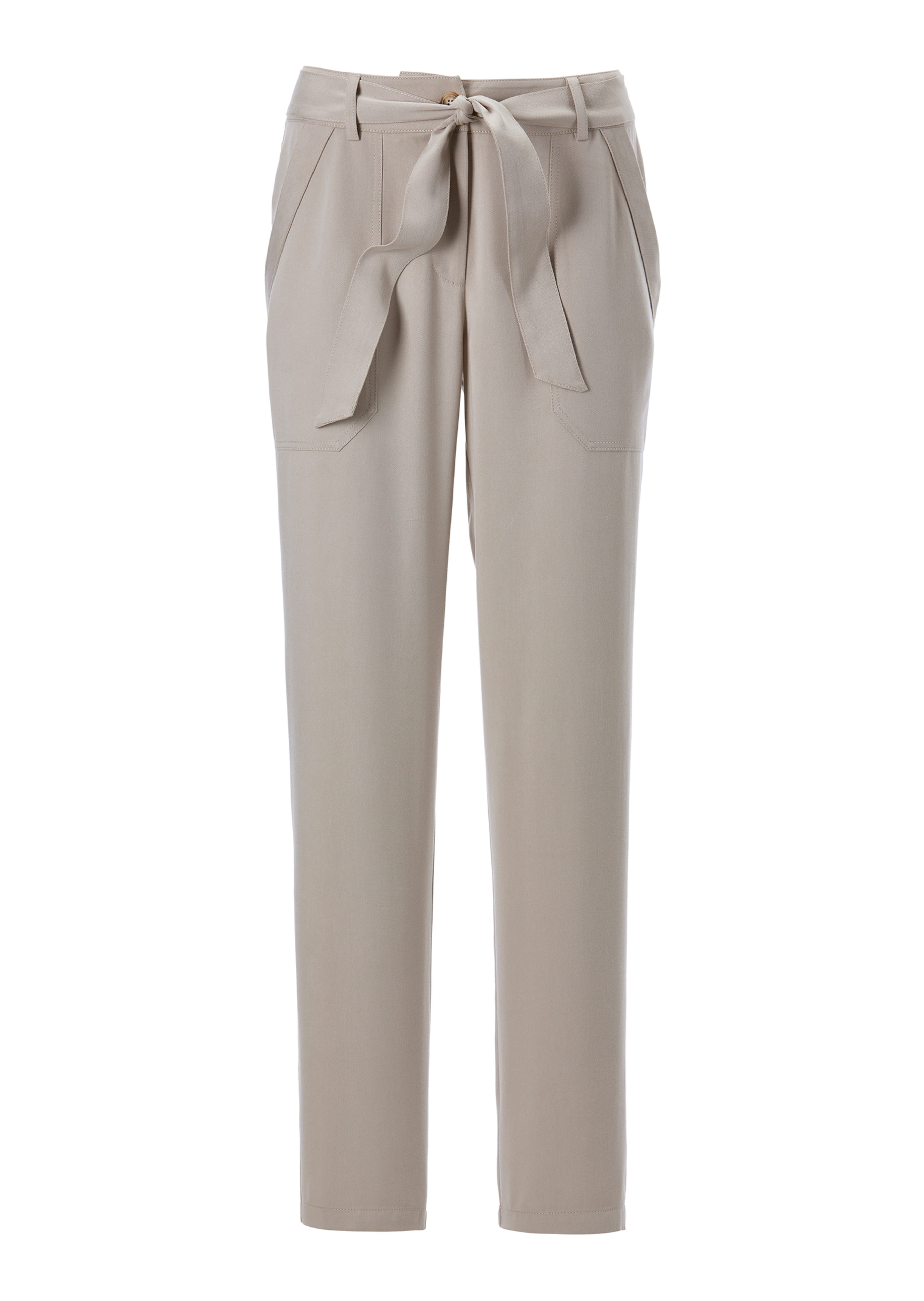 Feminine Hosentypen verleihen Ihrem Styling moderne Klasse! Die knöchellange Hose aus weich fließender Qualität zeichnet mit ihrem schmal zulaufenden Bein eine angesagte Silhouette. Der Shape wirkt leger aber elegant – so macht sie im Büro und in der City eine prima Figur. Sie ist ausgestattet mit Formbund, Gürtelschlaufen, geknöpfter Innenbundsicherung, Fake-Gesäß-Leistentaschen und Bindegürtel. Aufgesetzte Taschen mit schrägem Eingriff unterstreichen ihren Stil. Dank gekonnt gesetzter Abnäher sitzt sie optimal. Die hintere Mitte ist änderungsfreundlich, so können Sie sie auch individuell anpassen lassen. Durch 2 Größenläufe mit N- und Kurzgrößen können sie auch kleinere Frauen gut tragen.