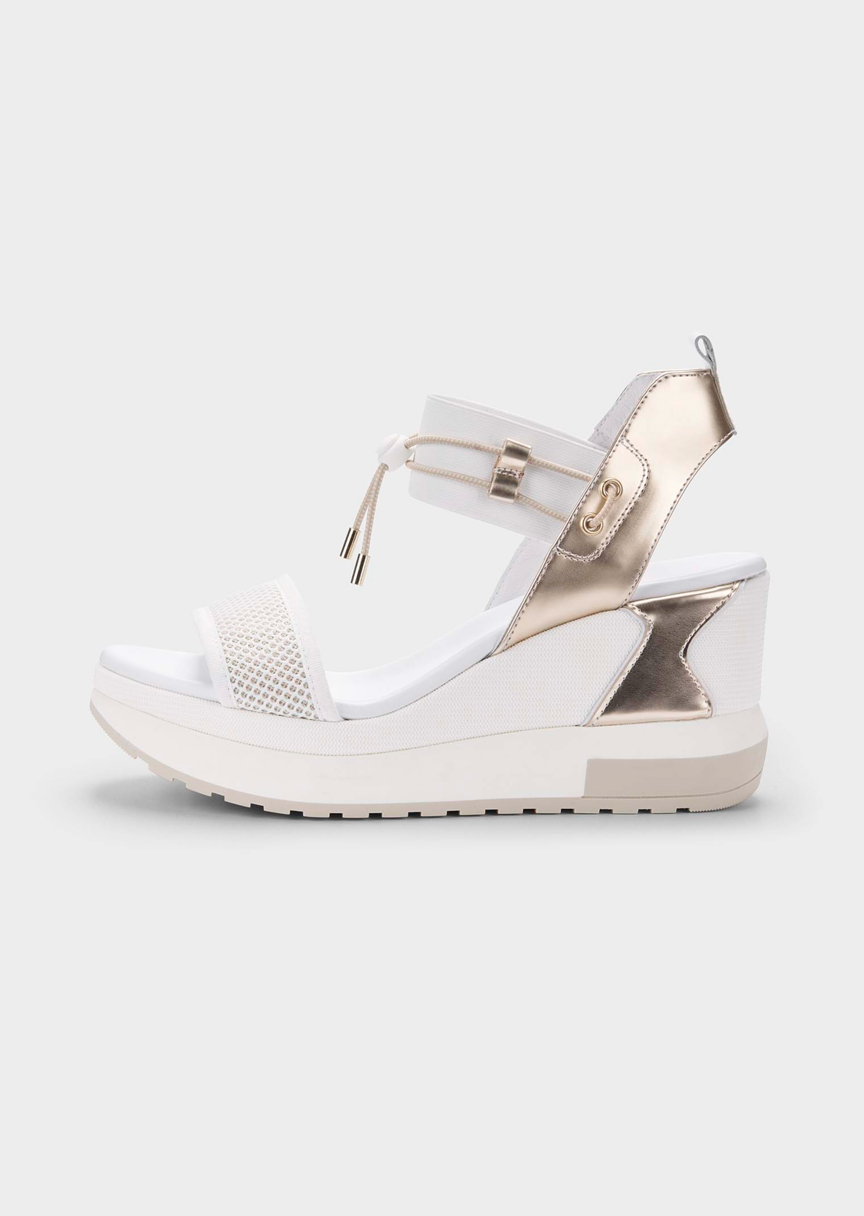 Ein echtes Design-Statement aus Italien: Diese Keilsandale von NERO GIARDINI ist nichts für leise Auftritte. Besonders auffällig ist der schimmernde Mesheinsatz, der je nach Lichteinfall in allen Regenbogenfarben strahlt – ein echter Eyecatcher! Die Metallic-Details sorgen für einen futuristischen Touch. Die Schnellschnürung am Riemchen lässt sich einfach verstellen und sorgt für passgenauen Sitz. Der Keilabsatz unterstreicht den modernen Look. Die hochwertige Leder-Innenausstattung zeugt von der qualitativen Verarbeitung.