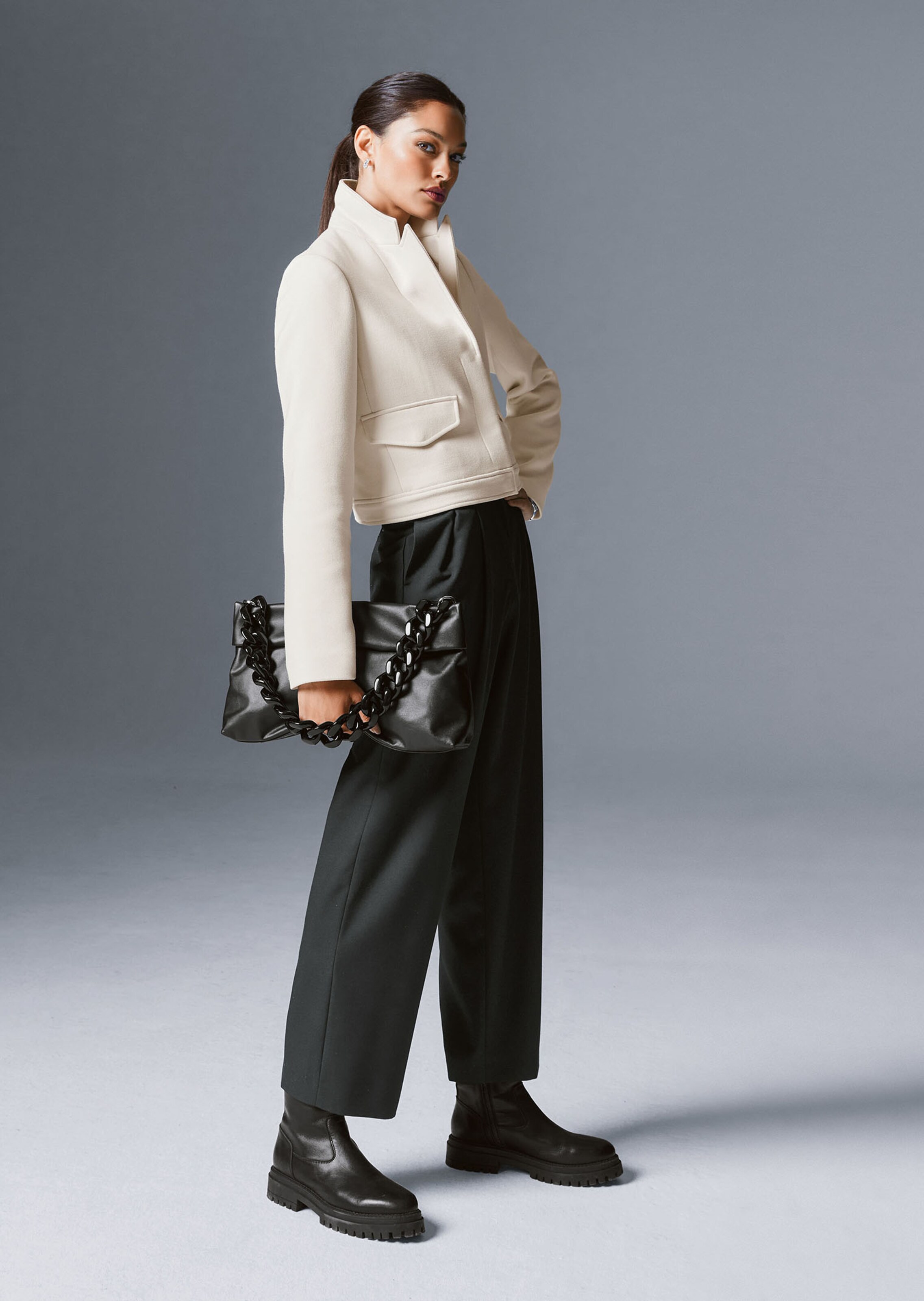 Ein Stylingallrounder für stilvolle Trendauftritte. Der Kurzblazer ist mit Langarm, Reverskragen und verdeckter Druckknopfleiste gestaltet. Die Pattentaschen werden per Druckknopf geschlossen. Der Saum ist modern gestaltet mit angesetztem Bund und Stitchings. Kombinieren Sie ihn zu eleganten, kontrastierenden Styling-Partnern!