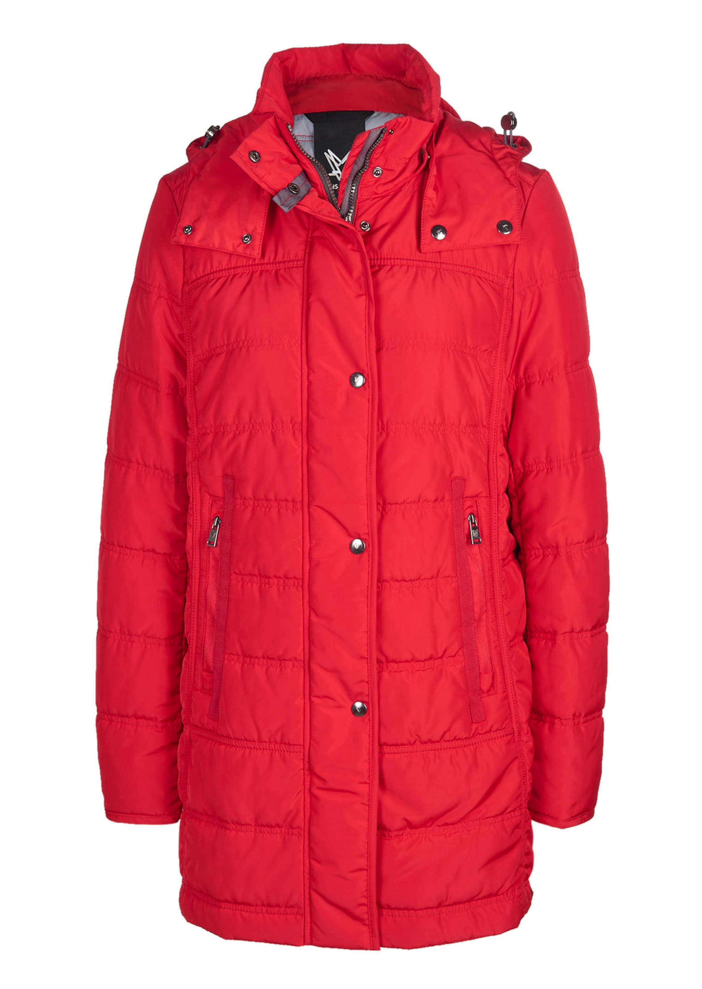 Kurzmantel von FUCHS SCHMITT in klassischem Stepp – damit kommen Sie gut durch die kalte Jahreszeit. Die abnehmbare Kapuze ist mit einem Gummizug und einem kleinen Dach gearbeitet, das schützt vor Wind und Wetter. Ebenso dient der hohe Stehkragen und der Reißverschluss mit Untertritt und verdeckter Druckknopfleiste als Wetterschutz. Das Rückteil hat einen kleinen Zierschlitz mit Bindeband für mehr Bewegungsfreiheit. Reißverschlusstaschen im Vorderteil und eine Innentasche mit Druckknopf sind ein praktisches Must-Have. Länge in Gr. 36 ca. 84 cm. Styling-Tipp: Das etwas längere Modell verleiht Ihrem Outfit eine sportive Note und passt daher besonders gut zu Jeans und dicken Lammfellboots.