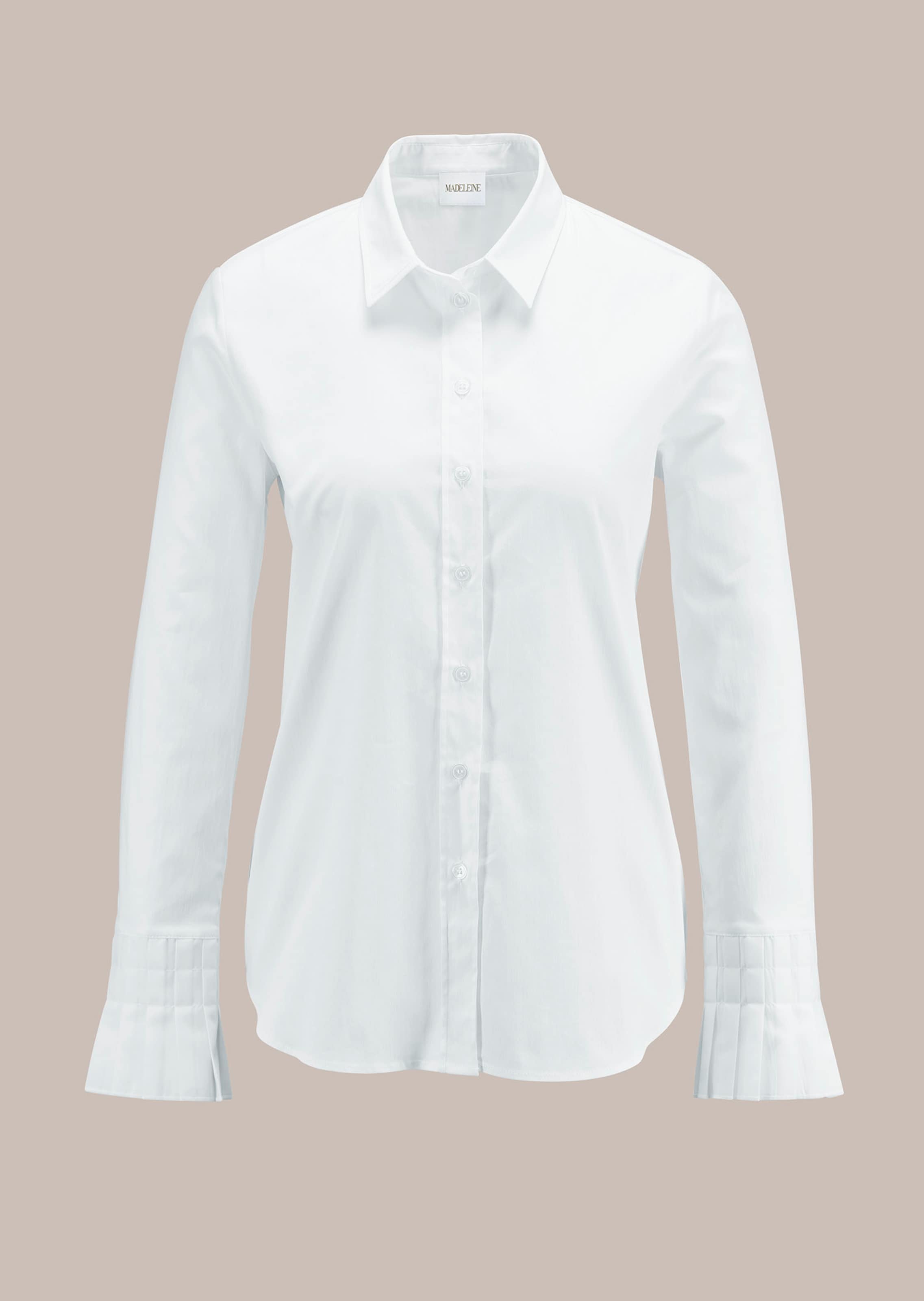 Modisch legere Hemdblusen vereinen Lässigkeit und Eleganz mit eindrucksvoller Coolness und eignen sich für viele Styles. Die lange Form mit gerundeter Saumkante kann eingesteckt oder auch darüber getragen werden und ist dank Stretch-Anteil bequem zu tragen. Ein klassischer Blusenkragen, lange Ärmel mit in Falten gelegten Manschetten und die durchgehende Knopfleiste komplettieren den Style.
