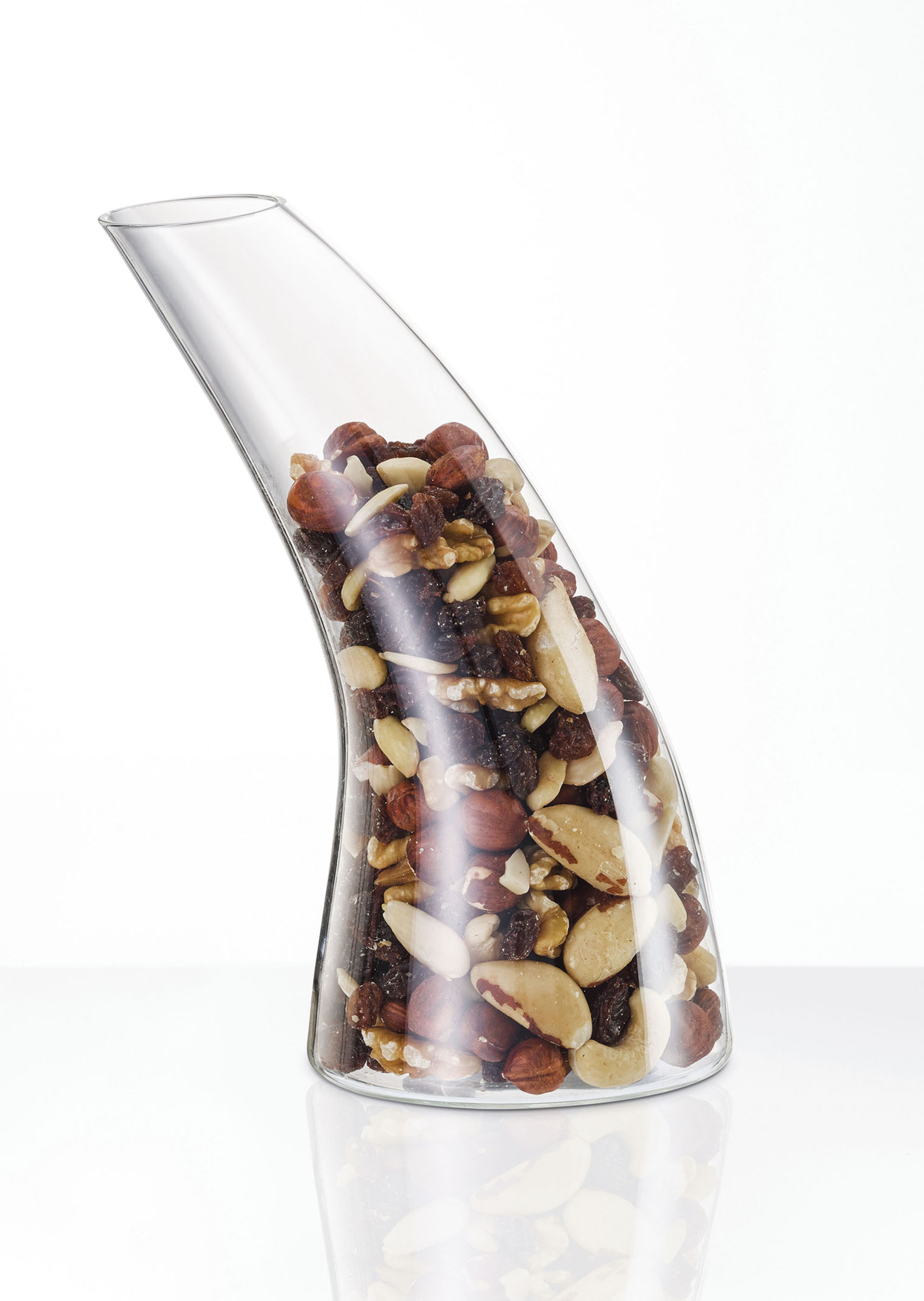 Bei einem gemütlichen Abend mit Freunden dürfen kleine Knabbereien wie Nüsse nicht fehlen. Die lassen sich besonders ansprechend in diesem dekorativen von Hand gefertigten Spender aus edlem Kristall servieren. Statt mit den Fingern in eine Schale zu greifen, schüttet man sich die Nüsse einfach und hygienisch in die Hand ohne den restlichen Inhalt zu berühren.