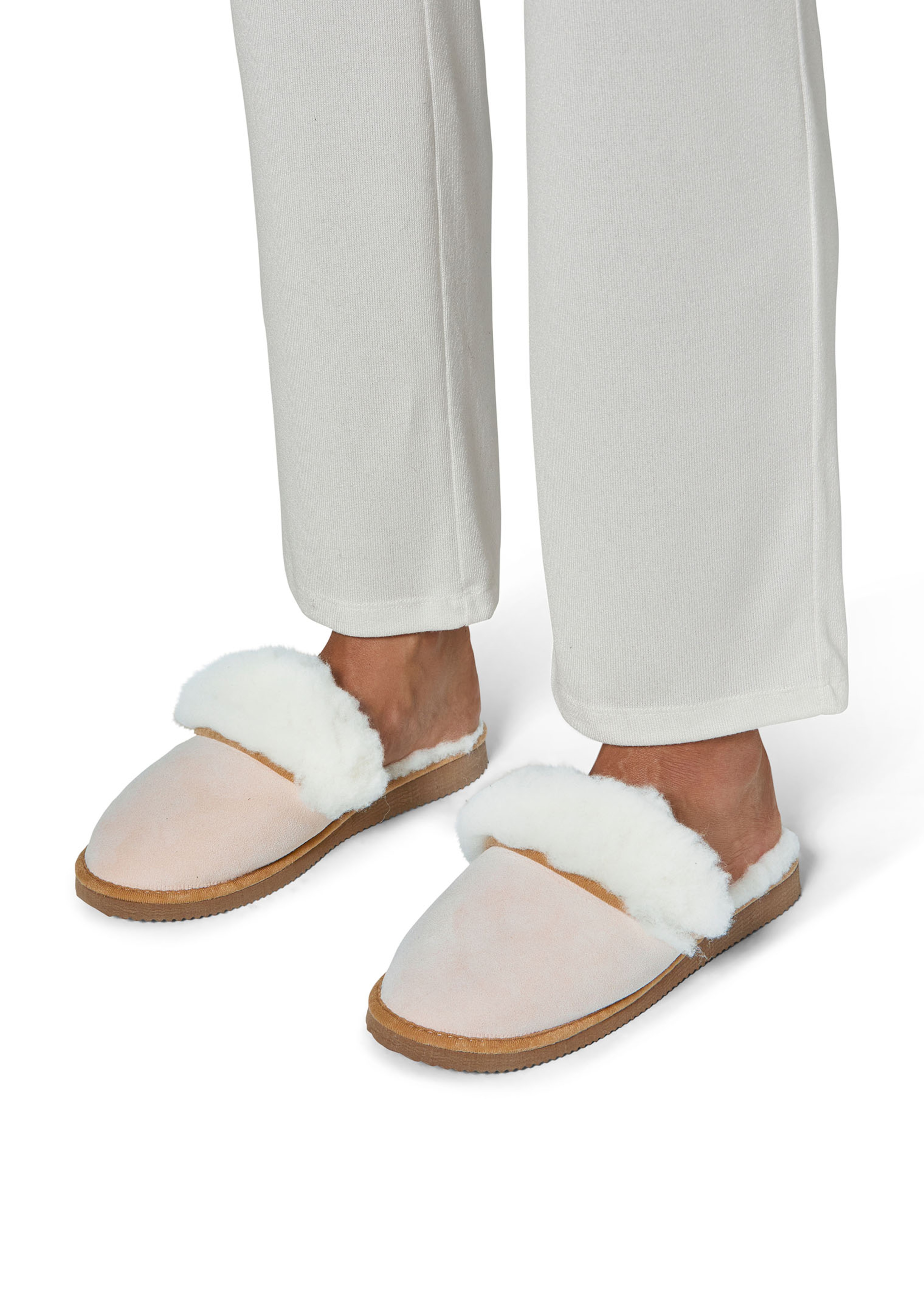 Diese Lammfell-Pantolette macht die kalten Wintertage zu Hause noch ein bisschen gemütlicher. In Portugal handgefertigt, begeistert sie außen mit softem Veloursleder und innen mit kuschelig weichem Fell. Sie trägt sich überraschend leicht und ist für ein angenehmes Tragegefühl mit einer Gummilaufsohle versehen. Einfach hineinschlüpfen und wohlfühlen!