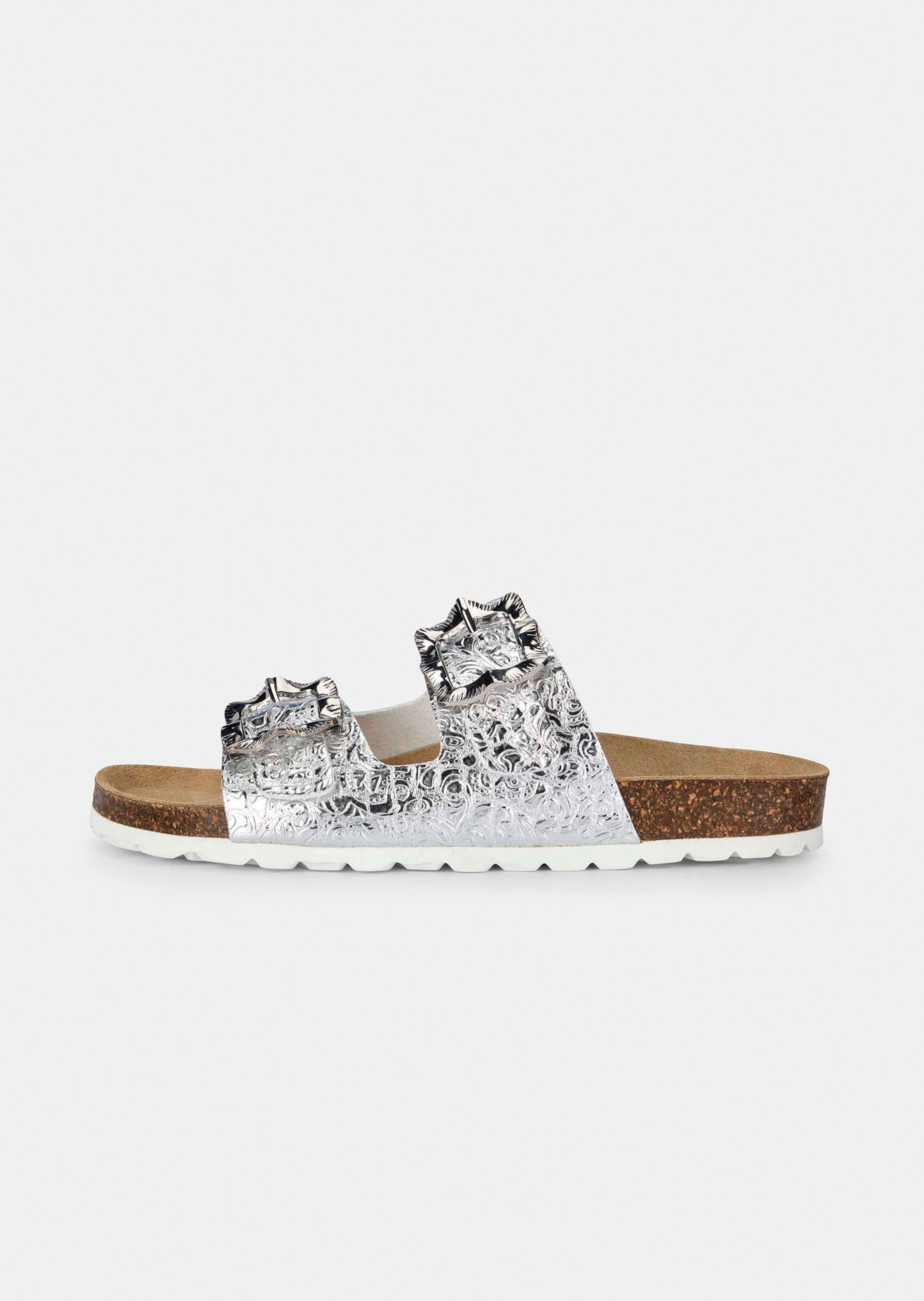 Diese Pantolette vereint Komfort und Style. Das Obermaterial aus Leder zeigt sich mit feiner Ornamentprägung, während die dekorative Schließe einen schicken Akzent setzt. Dank weichem Lederfußbett und flexibler Laufsohle trägt sich das Modell angenehm und sicher. Die H-Weite bietet zusätzlichen Raum, der kleine Absatz eine bequeme Standhöhe – perfekt für entspannte Sommermomente mit modischer Note.