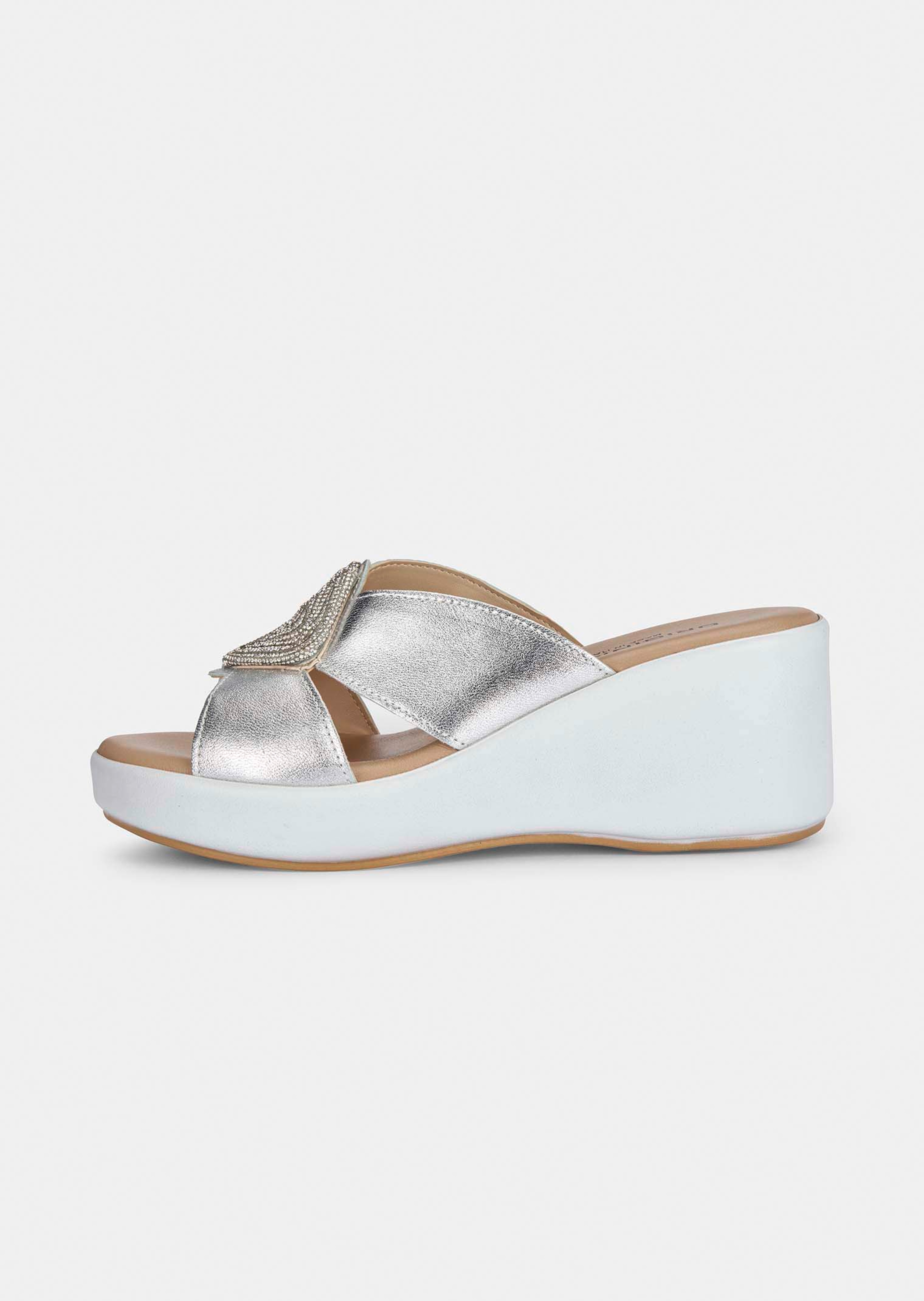 Diese Pantolette vereint feminines Design mit angenehmem Laufgefühl. Das glitzernde Ornament mit Strassteinchen setzt einen glamourösen Akzent, während der bequeme Keilabsatz für eine vorteilhafte Silhouette sorgt. Dank der leichten, dämpfenden Laufsohle lässt sich der Schuh den ganzen Tag über angenehm tragen. Das Obermaterial und die Decksohle, beides aus Leder, bieten zusätzlichen Komfort.