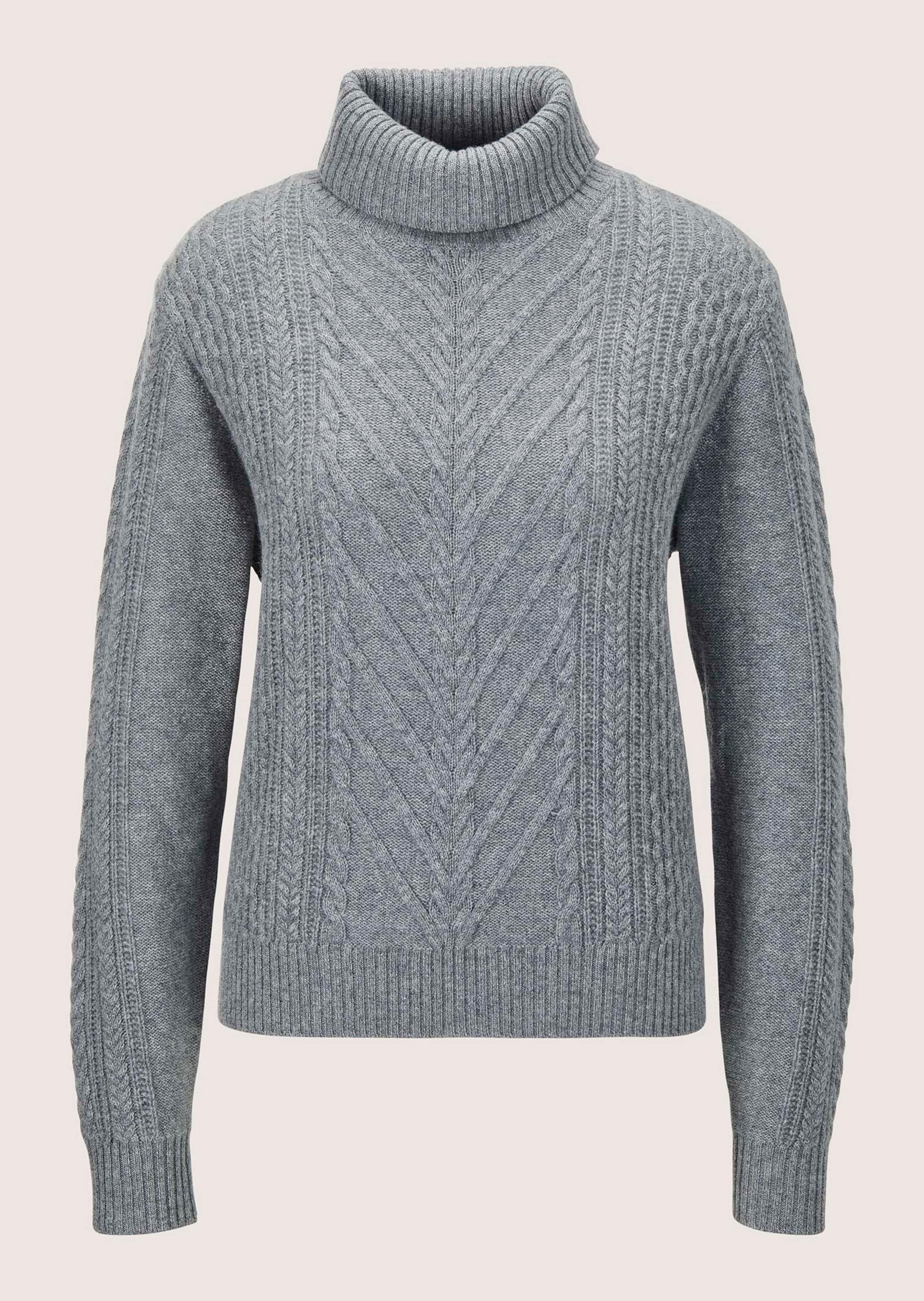 Gönnen Sie sich den Luxus edlen Kaschmir-Garns! Die hochwertige Natur-Qualität ist kuschelig weich und wertvoll verarbeitet und zeigt sich hier in leicht legerer Form mit hohem, komfortablem Rollkragen. Das wechselnde Zopfmuster ist trendstark im Look und kann vielseitig kombiniert werden. Lange Ärmel mit Rippenbündchen sorgen für einen perfekten Sitz und bieten zusätzlichen Komfort. Ein edler Maschen-Partner für jede Gelegenheit