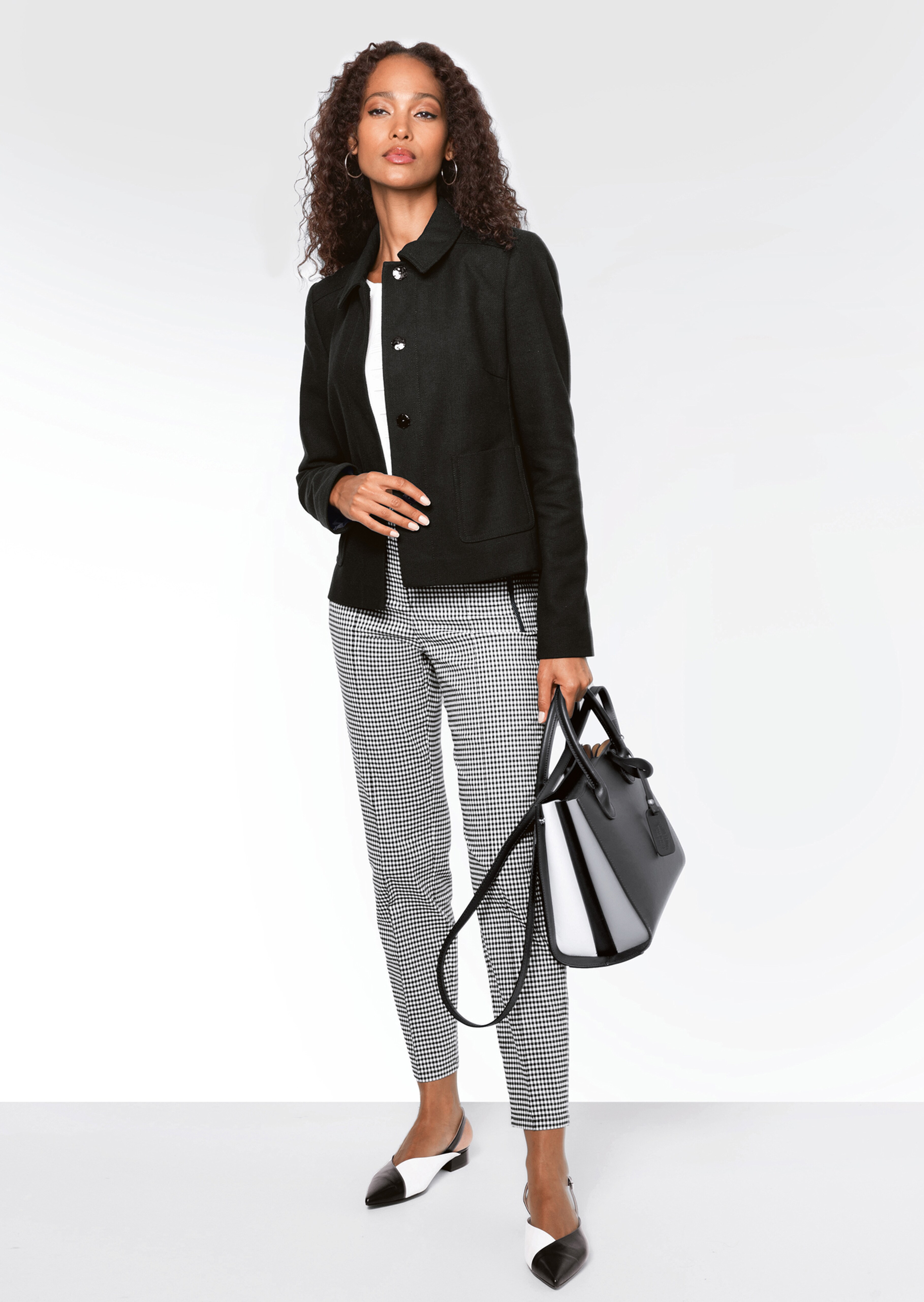 Eine Hose, die mit einer Prise Nostalgie und angenehmem Trage-Komfort begeistert. Ausdrucksstark im Look präsentiert sich die Hosen-Variante in zauberhaftem Vichy-Karo und lässt Erinnerungen an längst vergangene Zeiten wach werden. Die querelastische Stretch-Qualität ist angenehm auf der Haut und verwöhnt mit komfortabler Bewegungsfreiheit. Die bundlose Form wird bequem auf einen unsichtbaren, innenseitigen Haken geschlossen. Abgesteppte Längsbiesen sorgen im Vorderteil für die gepflegte Note und runden den Look stilgerecht ab. Zierreißverschlüsse und Zierleisten deuten an Vorder- und Rückseite eingearbeitete Taschen an. Die Verarbeitung in Kurzgrößen wird auch den Anforderungen etwas kleinerer Frauen gerecht.