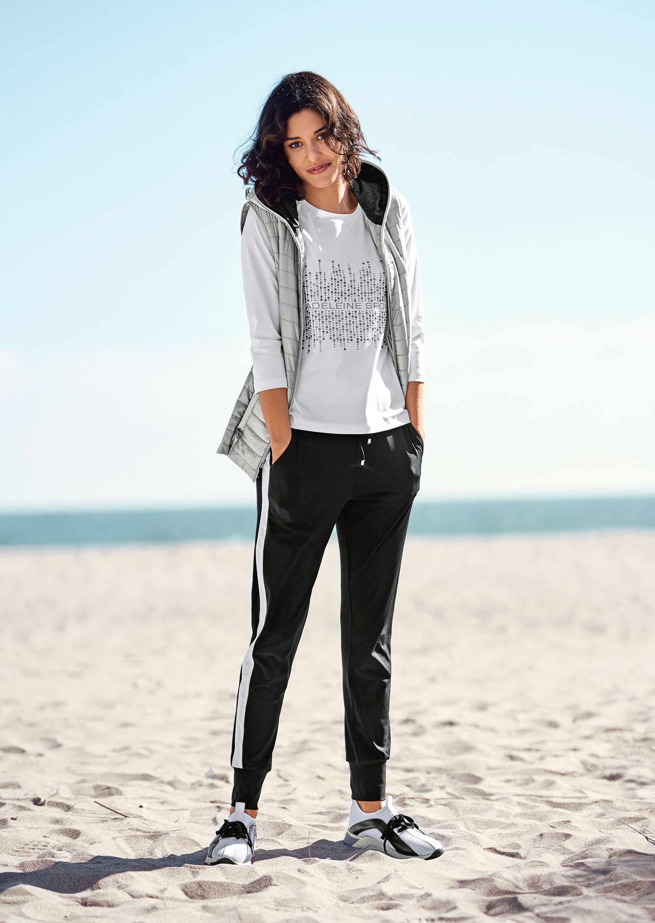 Effektvoller kann man einen Sport-Style nicht ergänzen! Der dekorative Glitzerprint mit MADELEINE SPORTS-Stickerei im Vorderteil sowie die Zierknopfleiste an der Schulter verleihen diesem Shirt viel Trend-Appeal. Durch die Stretch-Qualität schmiegt es sich fantastisch an und ist mit Rundhals-Ausschnitt und 3/4-Ärmel gestaltet.