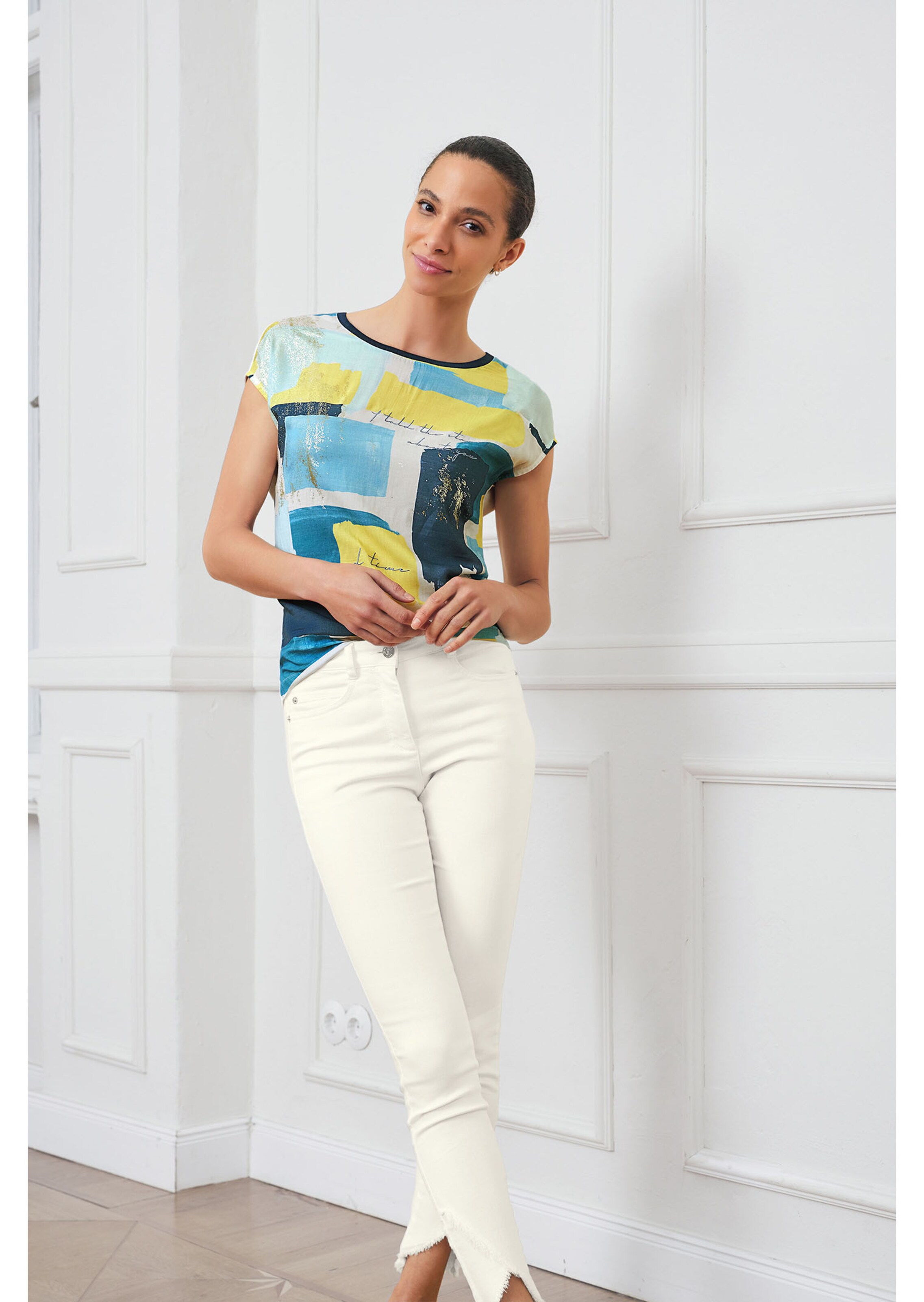 Nur Mut zum Muster! Shirts wie dieses sehr schicke Unikat-Modell mit Folien-Print und Stickerei gehören zu den Must-haves der neuen Saison. Das ärmellose Shirt ist leger geschnitten, hat einen formschönen Rundhalsausschnitt und eine überschnittene Schulterpartie. Das Vorderteil ist aus Jersey, das Rückenteil aus gewebter Qualität gearbeitet.