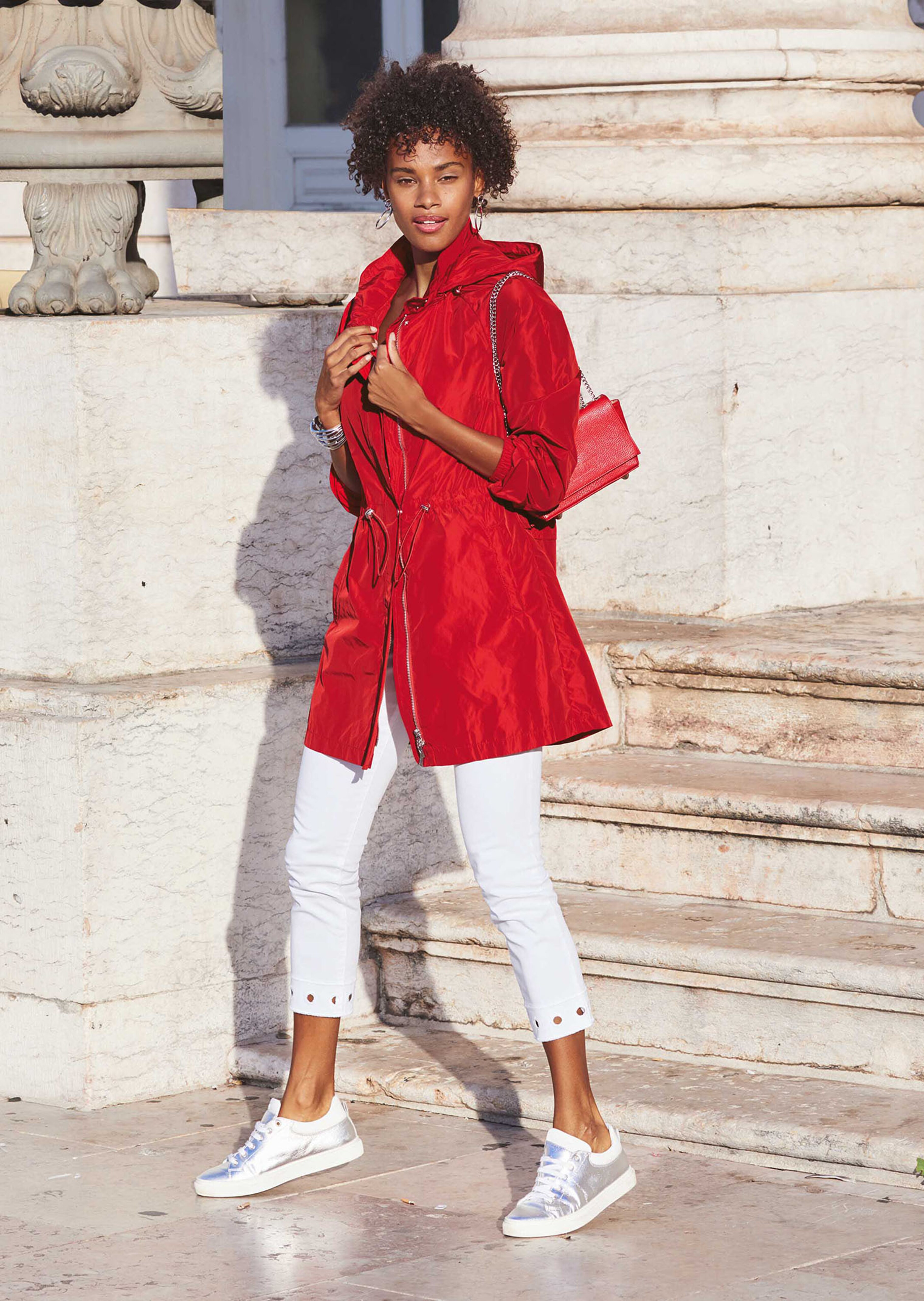 Die typische Lieblingsjacke für die unterschiedlichsten Wetterlagen! Der Sommerparka mit Kapuze ist der perfekte Partner für all Ihre Pläne. In ungefütterter Leichtvariante trägt er sich angenehm und kommt schön feminin auf Figur. Ausgestattet ist er mit Stehkragen, Logodruckern, 2-Wege-Zipper, Schubtaschen und Langarm mit Gummizugbund. Dank Tunnelzug mit Metallstoppern in der Taille und in der abnehmbaren Kapuze können Sie ihn individuell regulieren. Kombinieren Sie ihn zu strahlendem Weiß für einen starken Kontrast!