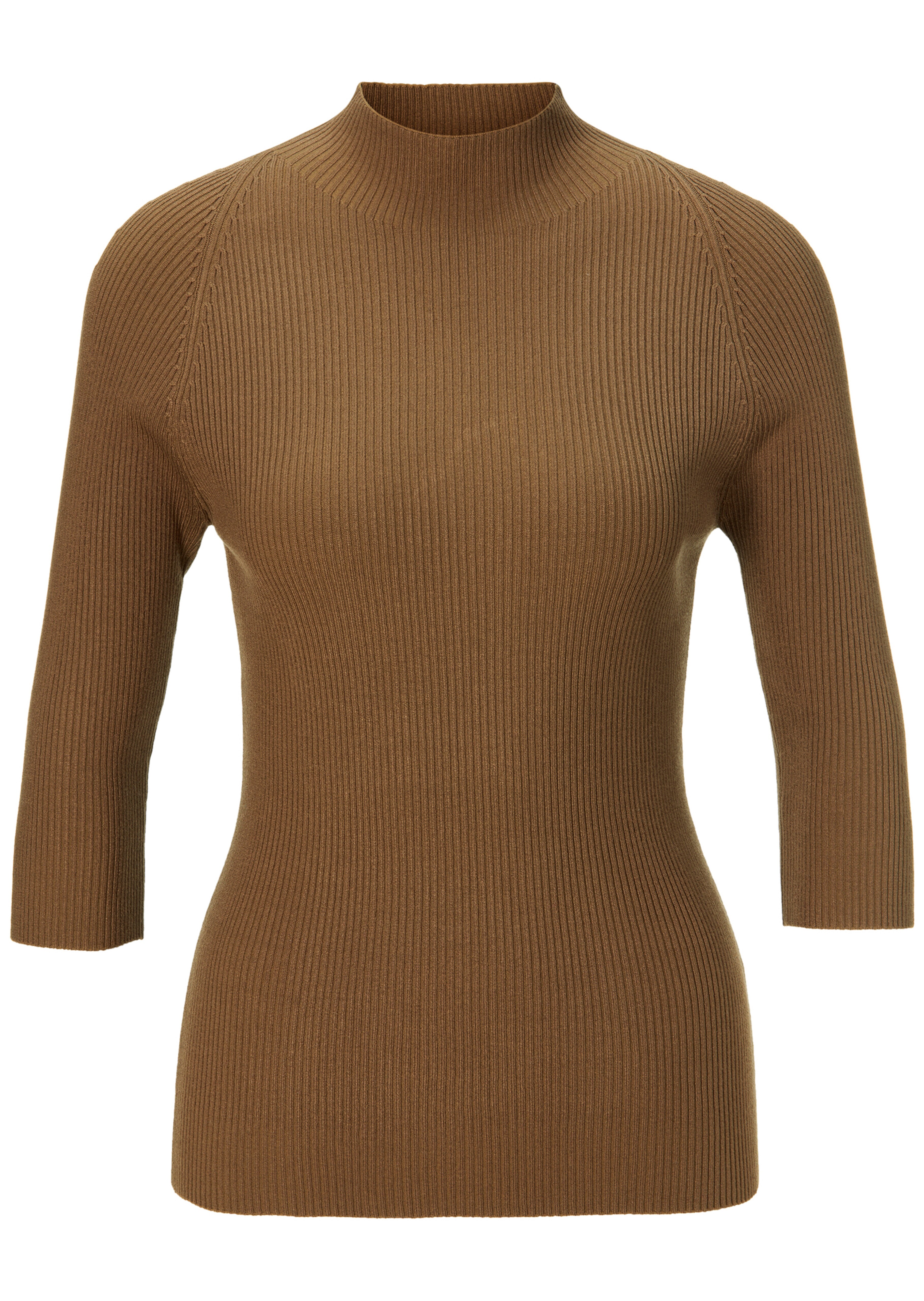 Ein vielseitiger Basic-Pullover in moderner Geradlinigkeit. Der feine Rippstrick aus hochwertigem Viskose-Stretch bietet Formstabilität. Der schmeichelnde Stehkragen und Ärmel in Ellbogenlänge machen den puren Pullover bürotauglich. Unter dem Blazer aber auch solo superedel – der Stehkragenpullover ist eine stilvolle Ergänzung für Ihre Grundgarderobe!