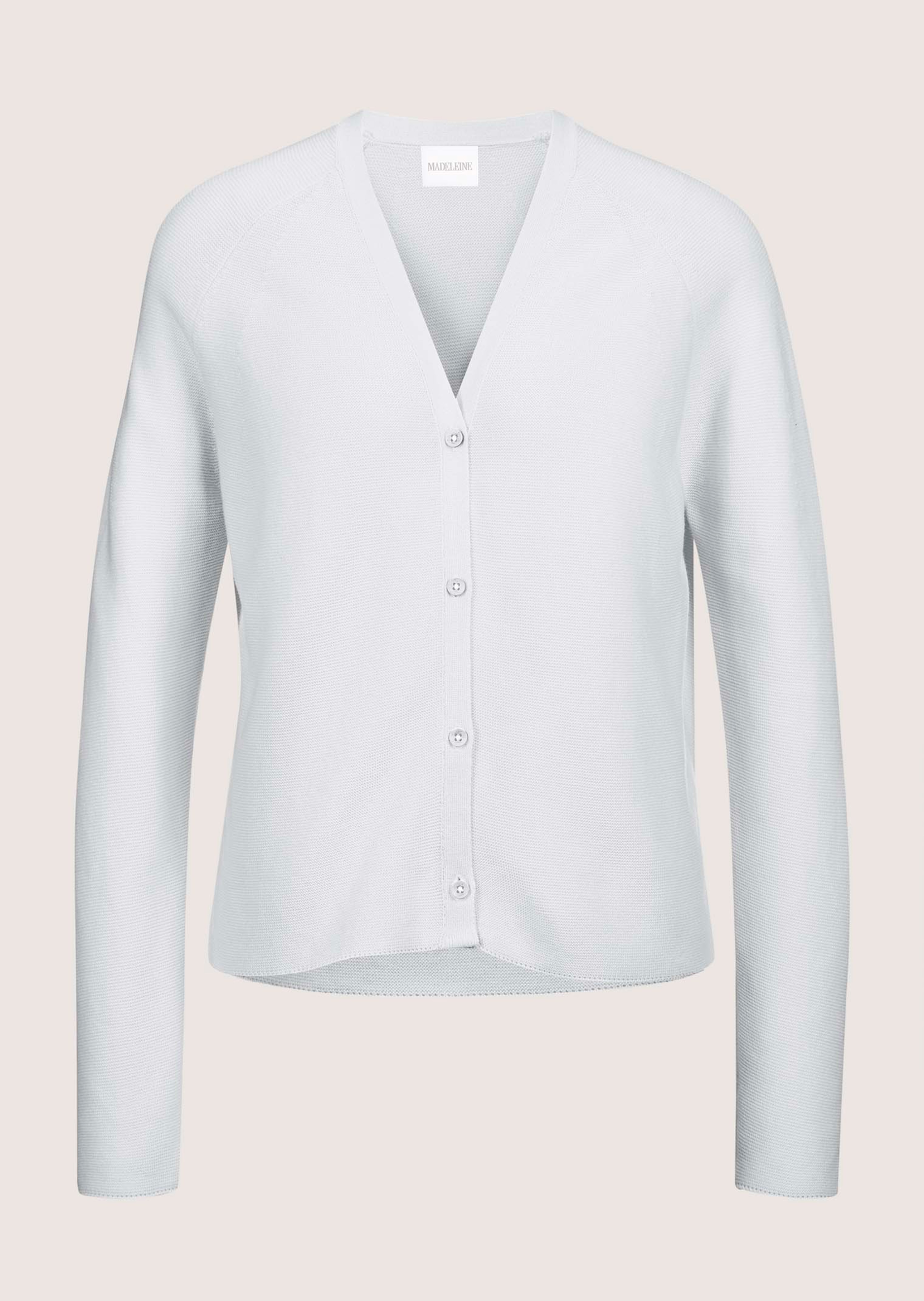 Sommer-Maschen, die jeden Look mit gepflegtem Chic ergänzen und dabei angenehm zu tragen sind. Hausympathisches Naturgarn ist wohltuend kühl im Trage-Gefühl und ideal für die warmen Tage des Jahres. Mit dieser Strickjacke runden Sie zahlreiche Looks mit modisch charmanter Note ab. Die trendstarke Kurzform ist am V-Ausschnitt per Knopfleiste zu schließen und mit langen Raglanärmeln gearbeitet. Saum und Ärmelbündchen werden dabei ganz klassisch von formstabilem Rippstrick eingerahmt.
