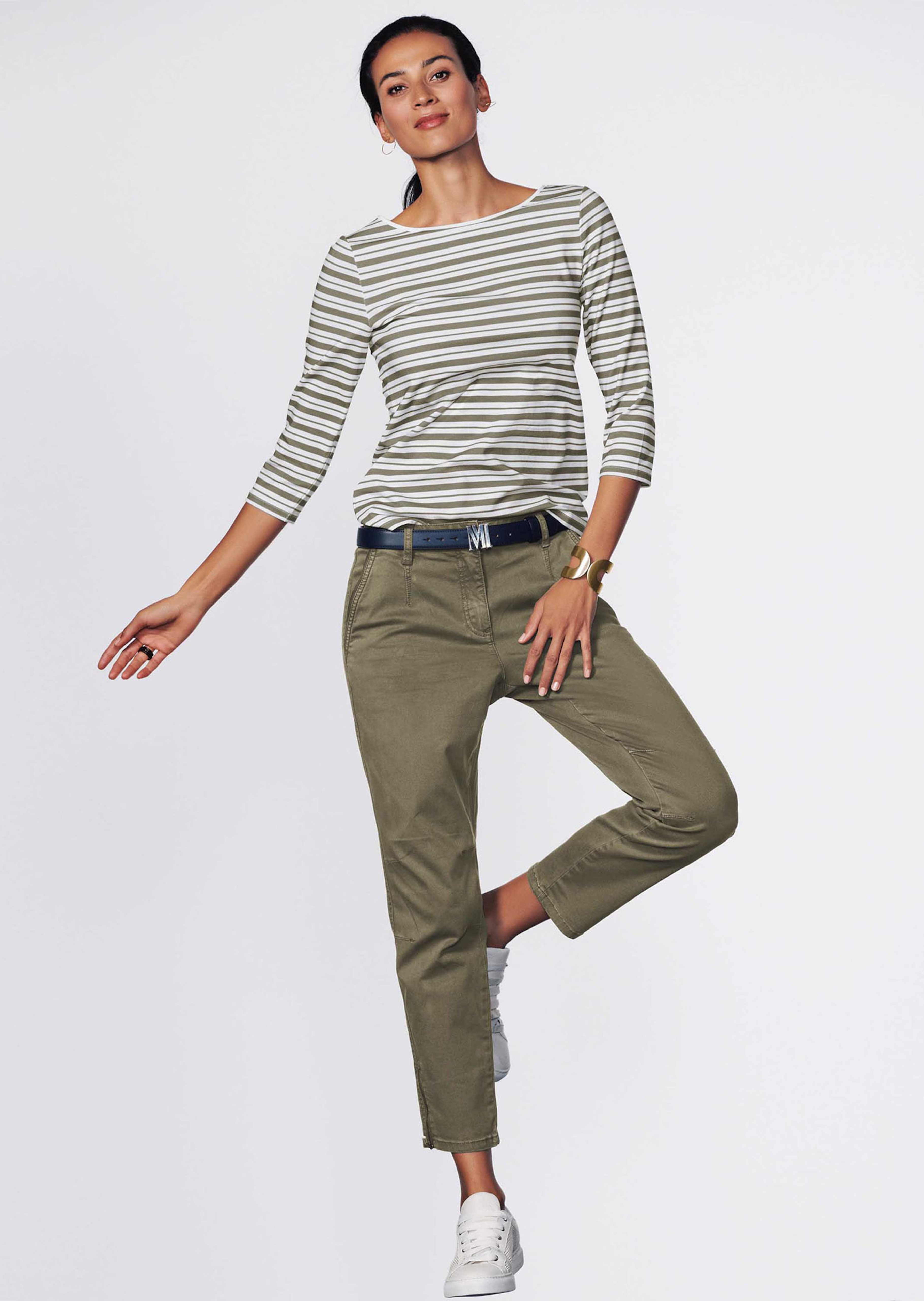 Das Ringel-Shirt ist ein Mode-Evergreen. Mindestens ein It-Piece mit dem Print-Klassiker sollte man besitzen. Wir finden dieses schlank geschnittene Modell mit feinen Web-Streifen besonders schick. Das Shirt ist figurbetont mit formschönem U-Boot-Ausschnitt und 3/4-langen Ärmeln gearbeitet.