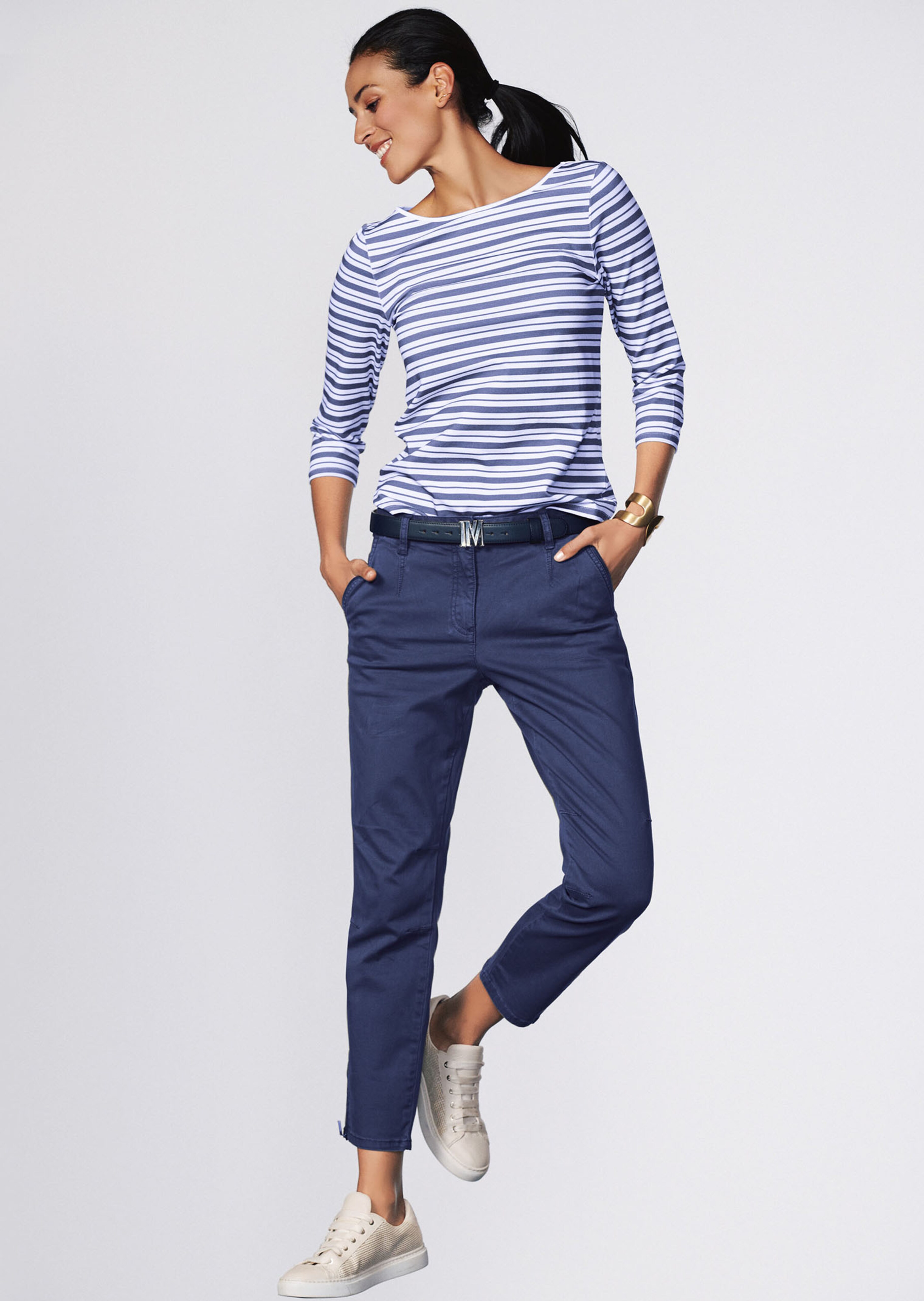 Das Ringel-Shirt ist ein Mode-Evergreen. Mindestens ein It-Piece mit dem Print-Klassiker sollte man besitzen. Wir finden dieses schlank geschnittene Modell mit feinen Web-Streifen besonders schick. Das Shirt ist figurbetont mit formschönem U-Boot-Ausschnitt und 3/4-langen Ärmeln gearbeitet.