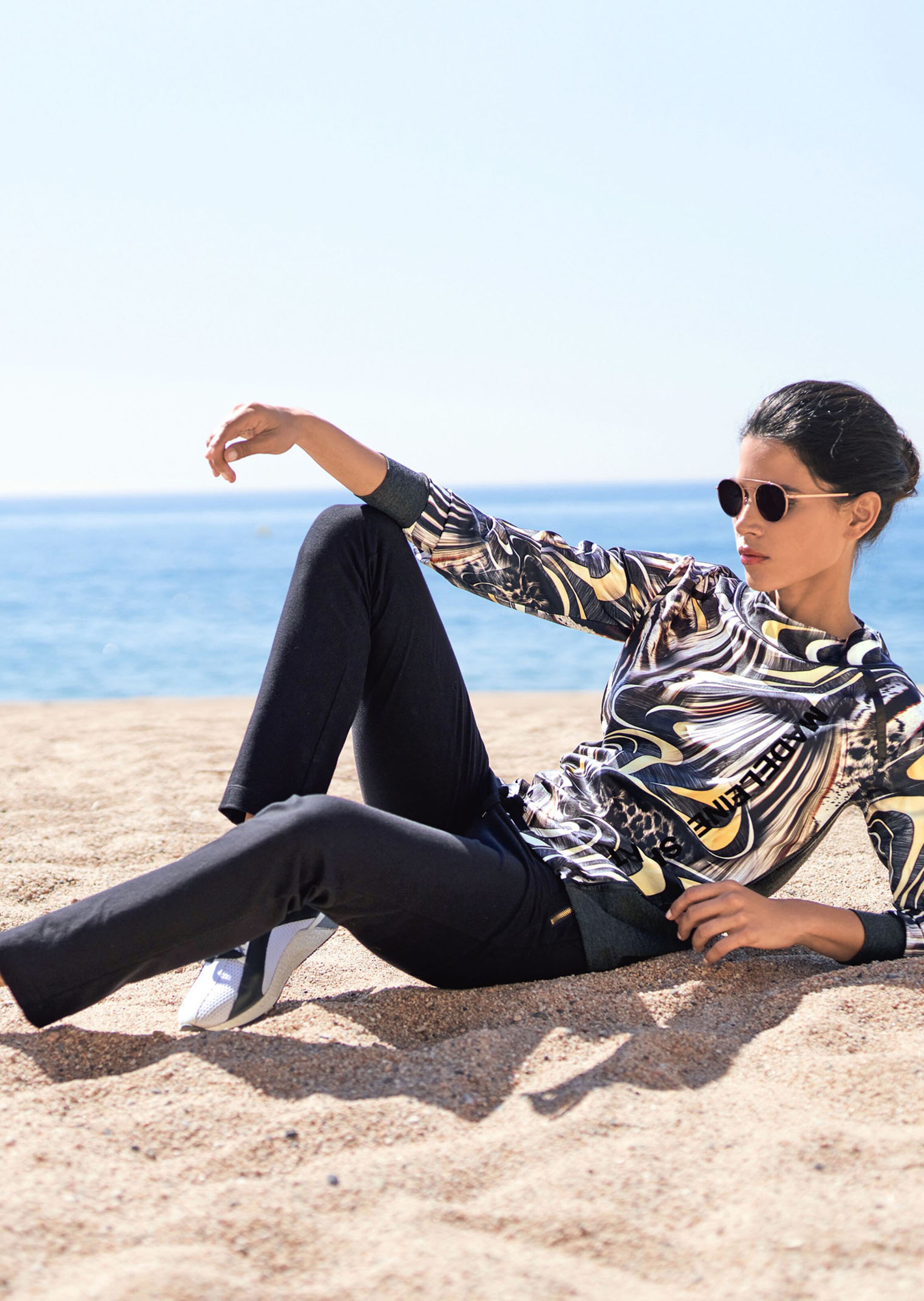 Das Sweatshirt setzt jetzt mit Animalunikatprint und Lederoptik Details modische Highlights und frischt schlichte Stylingpartner effektvoll auf. Der Rücken ist unifarben gestaltet. Leger und tragebequem zeigt es sich mit halsfernem Stehkragen, langem Ärmel, überschnittener Schulter und variablem Bändchenzug am Saum. Der Logo-Flockprint im Vorderteil macht den Look noch reizvoller.