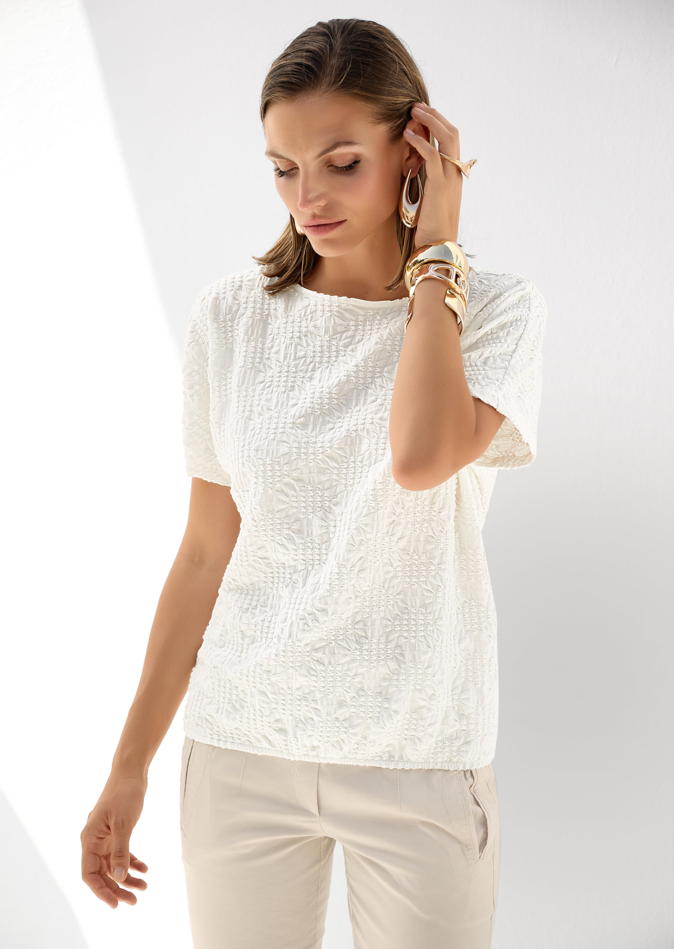 Ein Sweatshirt in modischer Kurzform – der perfekte Modepartner für angesagte Styling-Varianten. Rundhals-Ausschnitt und überschnittene Schultern bieten angenehmen Trage-Komfort, während kurze Ärmel ideal für wärmere Tage sind. Der Bund mit Gummizug kann individuell gestaltet werden. Ein Sweatshirt, das angenehm auf der Haut ist und trendstarke Kombi-Ideen mit viel Komfort ergänzt.