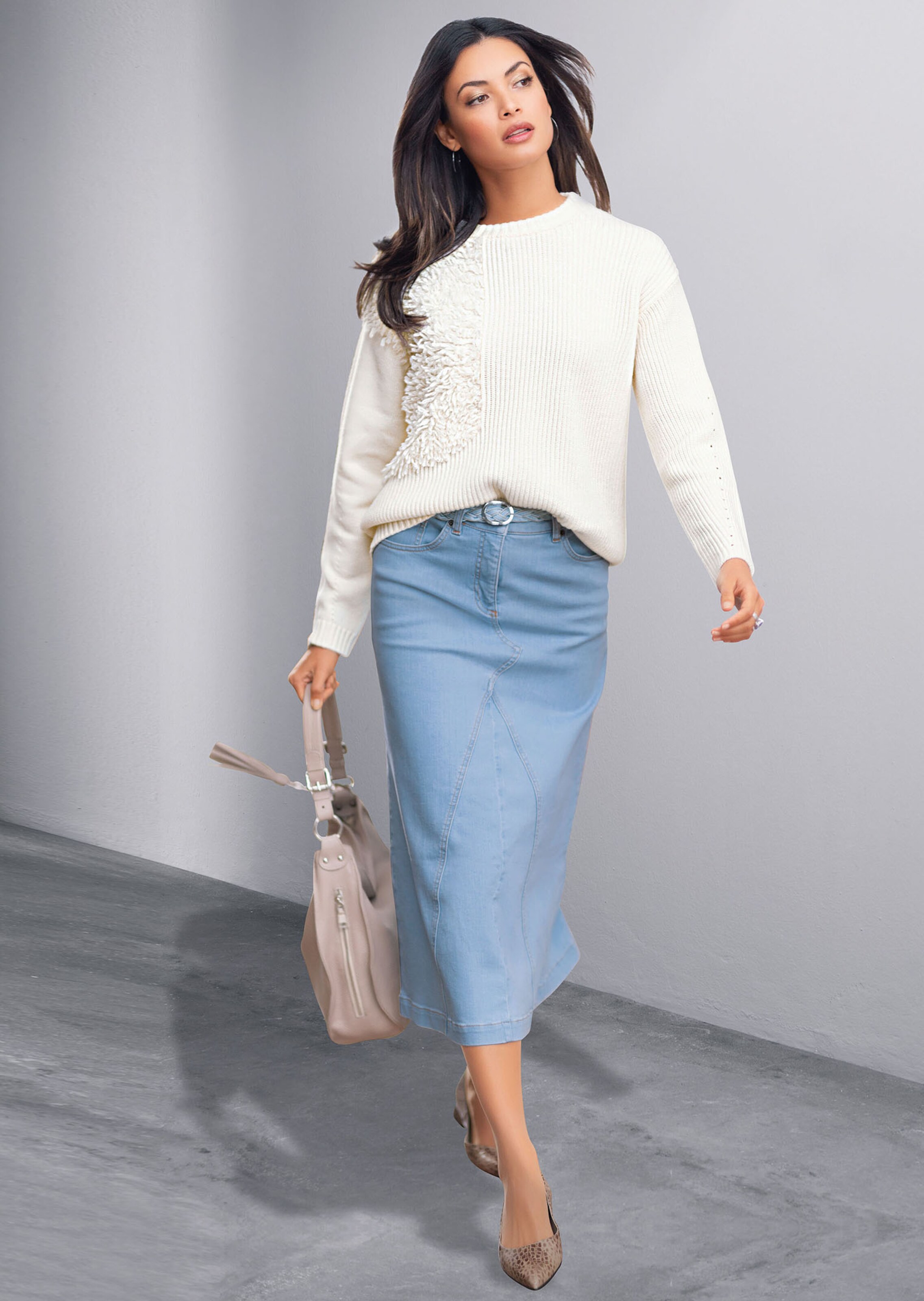 Ein It-Piece durch seinen Strickmix! Der weiche Winterpullover mit flauschigen Schlingenpartien im Vorderteil trägt sich herrlich wärmend an kalten Tagen. Durch die Merinowolle ist er super weich. Die moderne, lässige Form ist mit Rundhalsausschnitt, Langarm und überschnittenen Ärmeln gestaltet. Durch die klassische Farbe können Sie den Flauschpullover gut kombinieren – einmal lässig zu Denims und ein anders Mal elegant im Kontrast zu Schwarz.