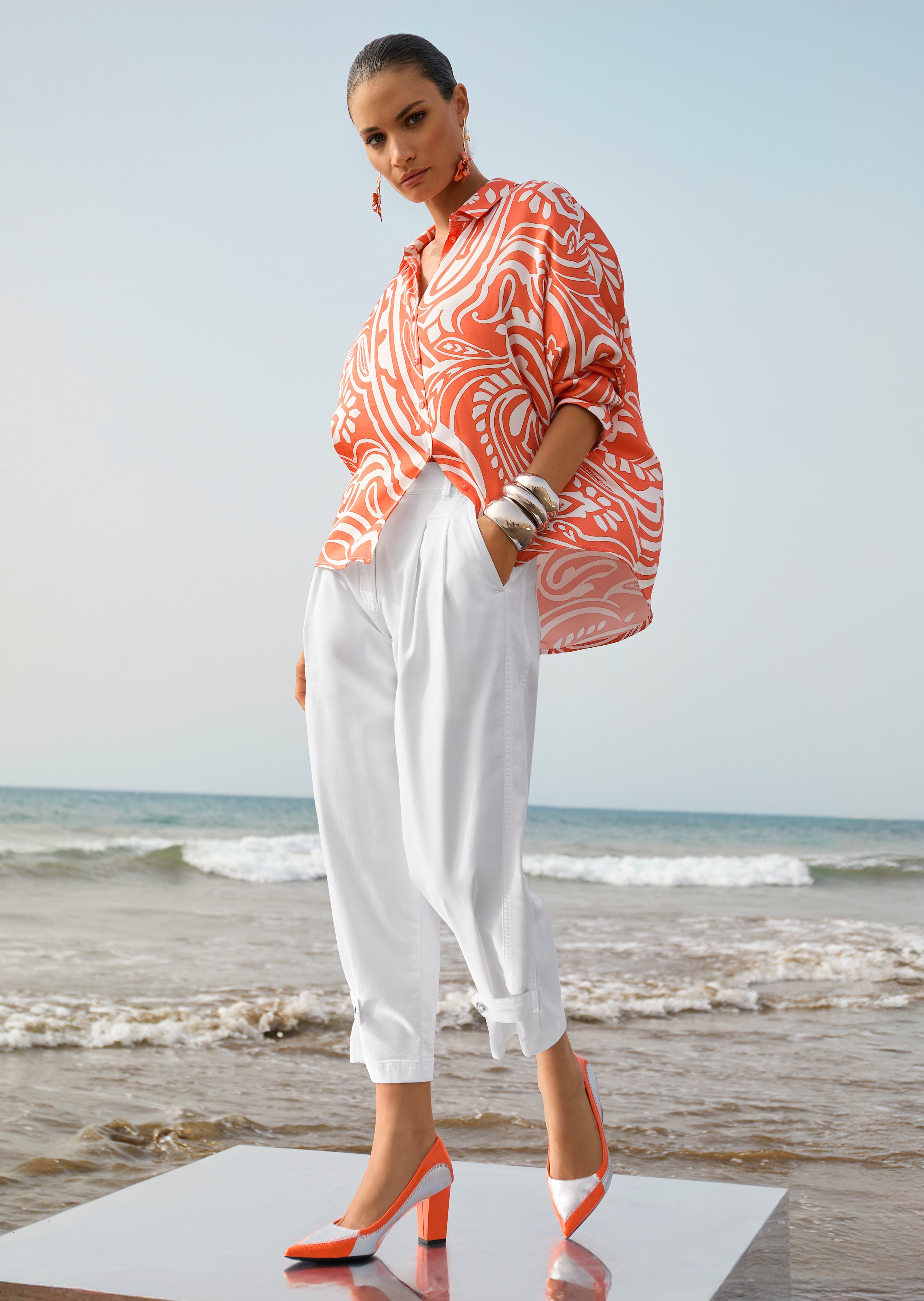 Ihr lässiger Shape setzt hier das Statement. Die weite 7/8-Jeans mit markanten Knopf-Riegeln am Saum zeichnet eine angesagte Silhouette. Die kühle Qualität hat einen angenehmen Griff. Wir haben sie im 4-Pocket-Style und in 7/8-Länge mit Formbund, Knopfverschluss, Gürtelschlaufen, Schubtaschen, rückseitiger, v-förmiger Passe, MADELEINE Logoknopf und aufgesetzten Gesäßtaschen gestaltet. Durch zusätzliche Kurzgrößen können sie auch kleine Frauen prima tragen.