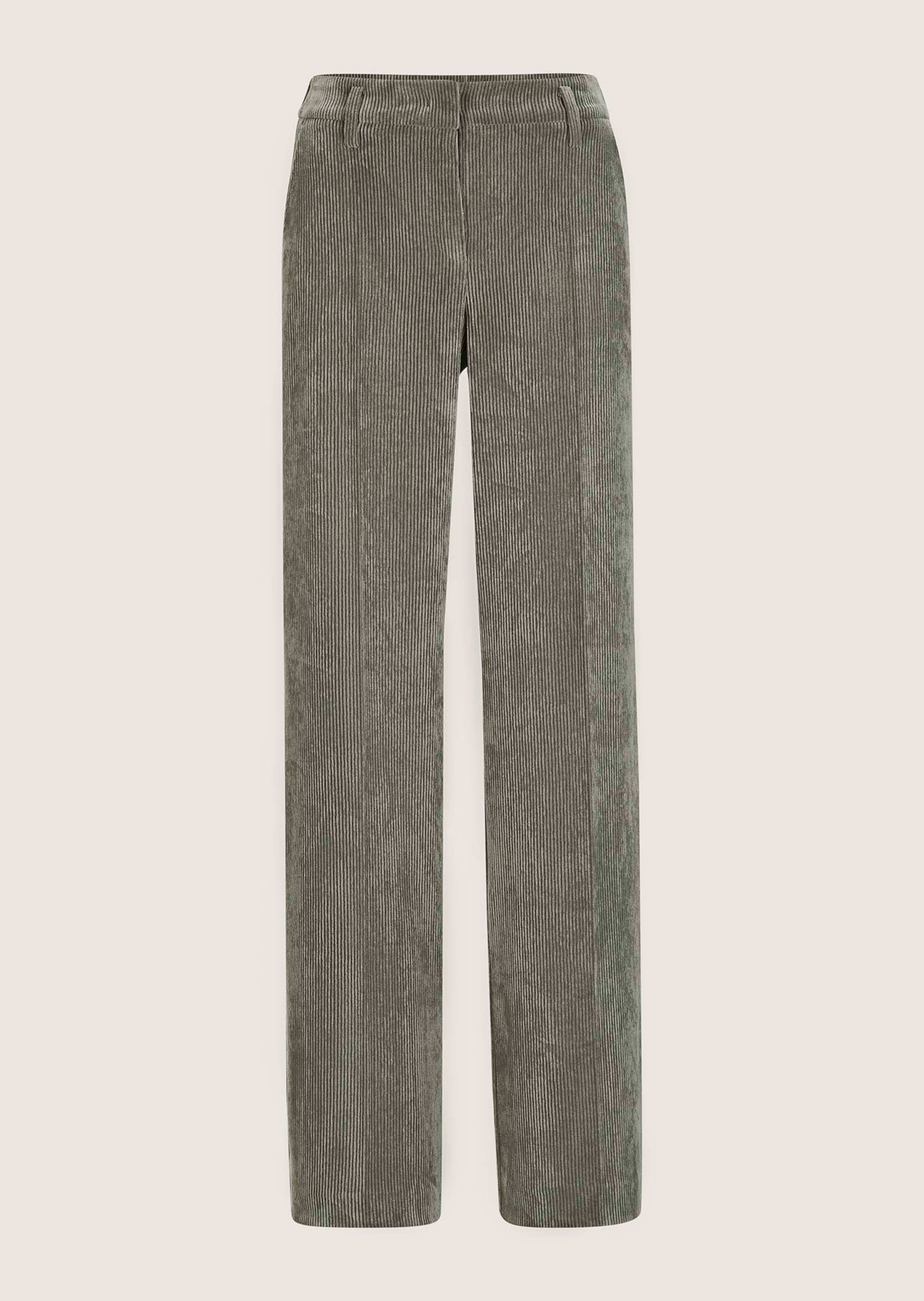 Cordhosen sind zurück und bringen frischen Wind in die Sortimente. Modisch leger im Look und angenehm auf der Haut sorgen beidseitige Bügelfalten für ein Plus an Chic. Der bequeme Stretch ist hüftschmal und mit weitem, geradem Bein gearbeitet. Seitliche Schubtaschen und zwei Gesäßtaschen bieten ausreichend Stauraum. Der Bund mit Gürtelschlaufen ist per Haken und Zipper zu schließen.