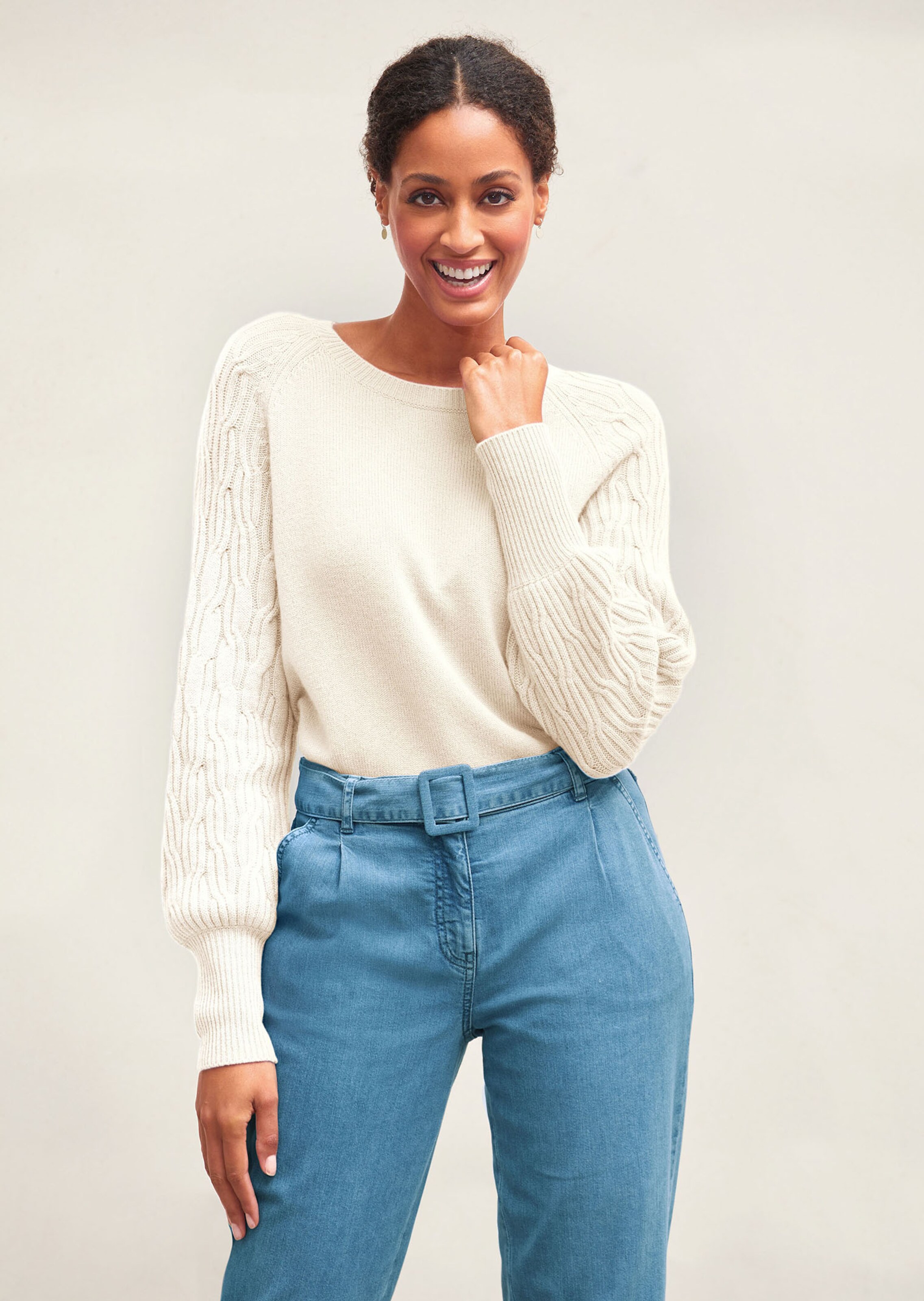 Ein luxuriöser Pullover im kunstvollen Strick-Mix. Der Zopfstrickpullover aus Schurwolle in Merinoqualität und Kaschmir trägt sich wunderbar weich und wärmend. Dank seiner Farbgebung können Sie ihn gut kombinieren – von lässig bis elegant. Wir haben ihn für einen zeitlos-modernern Look mit Rundhalsausschnitt und Rippstrickbündchen gestaltet.