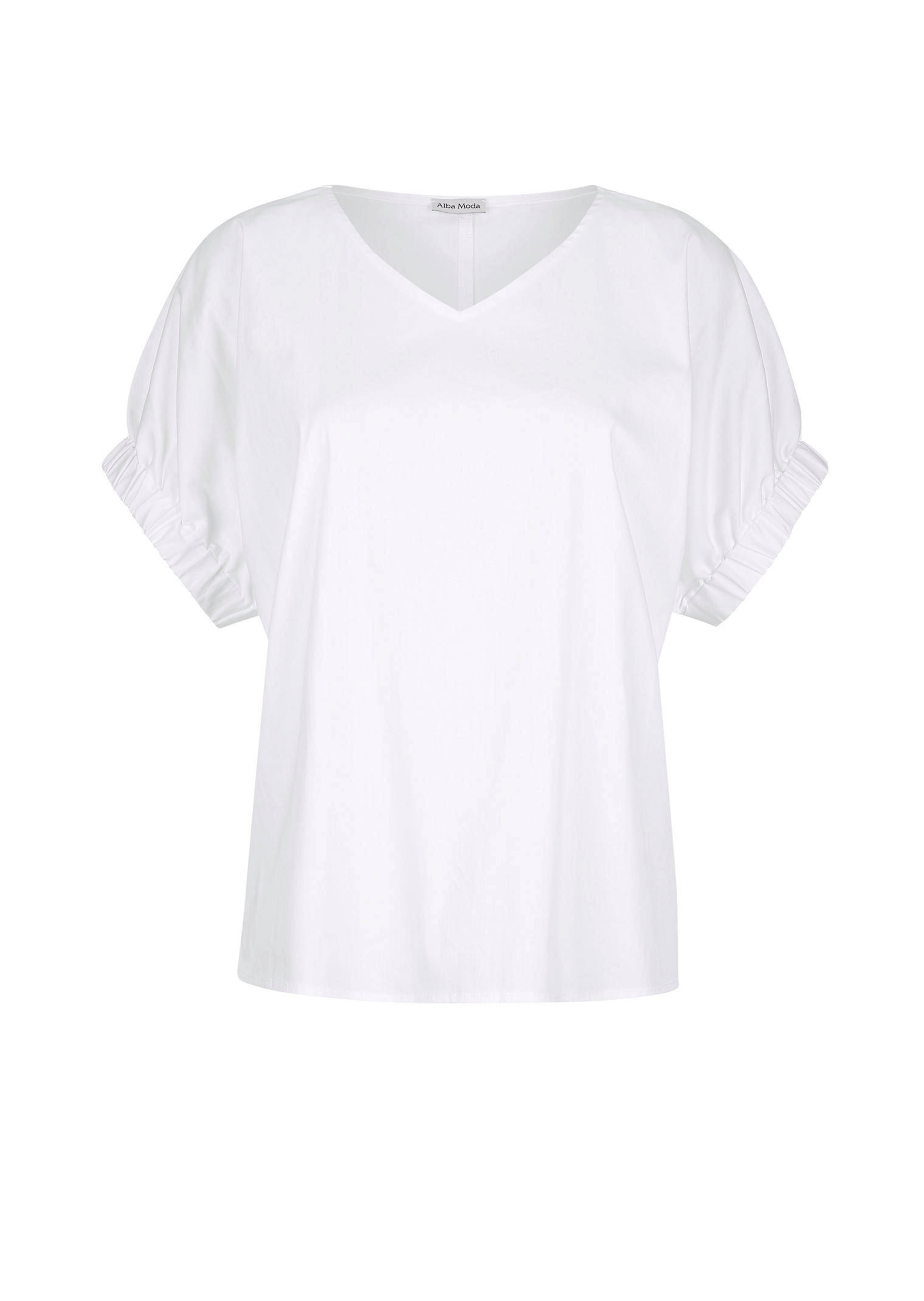 Oversized model van ALBA MODA in sportieve popelinekwaliteit. Kleine V-hals, halflange mouwen met elastische mouwboorden. Pop-over model met kleine zijsplitjes.