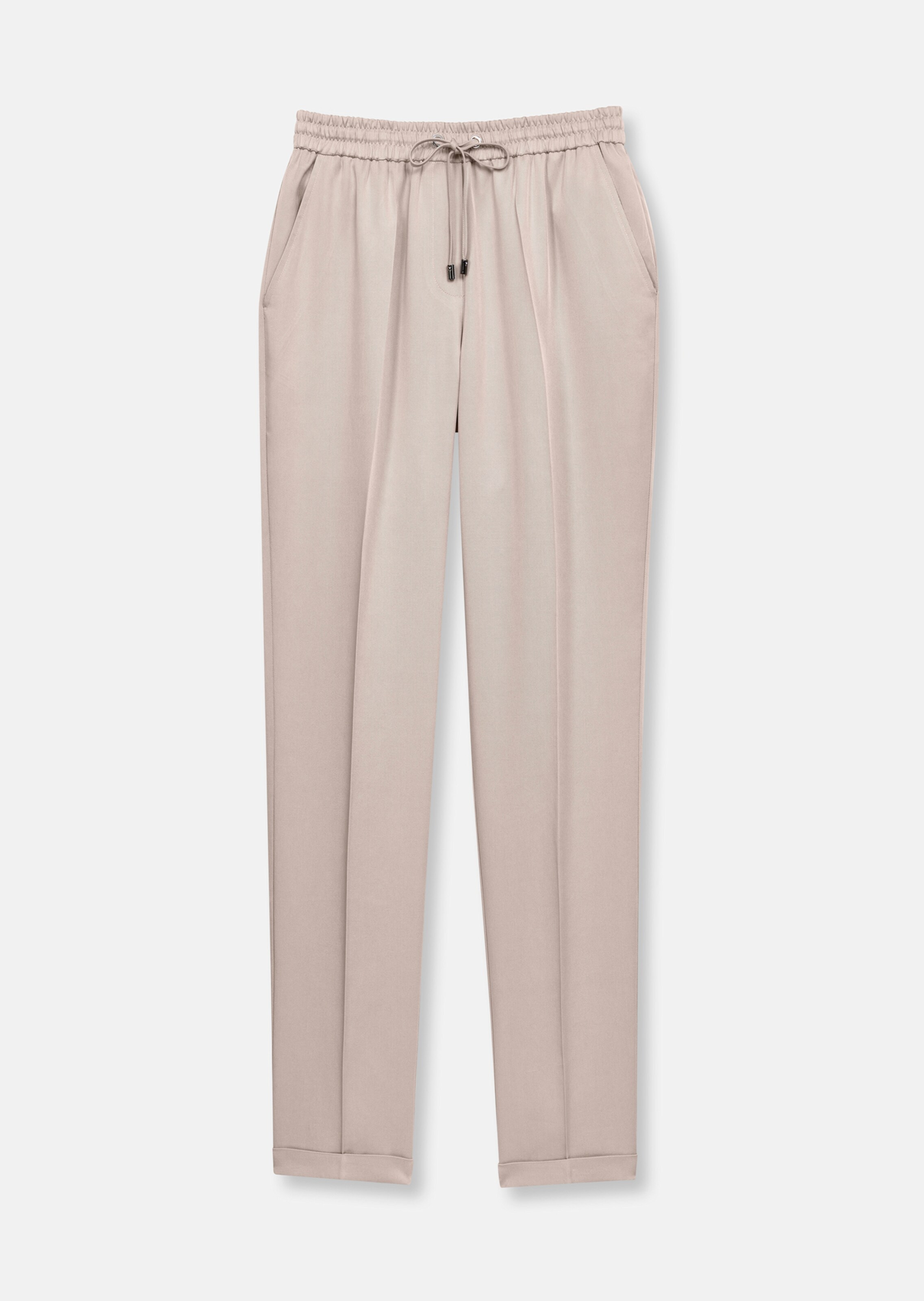 Zeer trendy en makkelijk aan te trekken! Met elastische tailleband, steekzakken en fake sluiting aan de voorkant. De taillebandwijdte is met een tunneltje individueel te reguleren. Zoom van de pijpen met modieuze omslag. Van duurzaam geproduceerde TENCEL™-lyocellvezels.