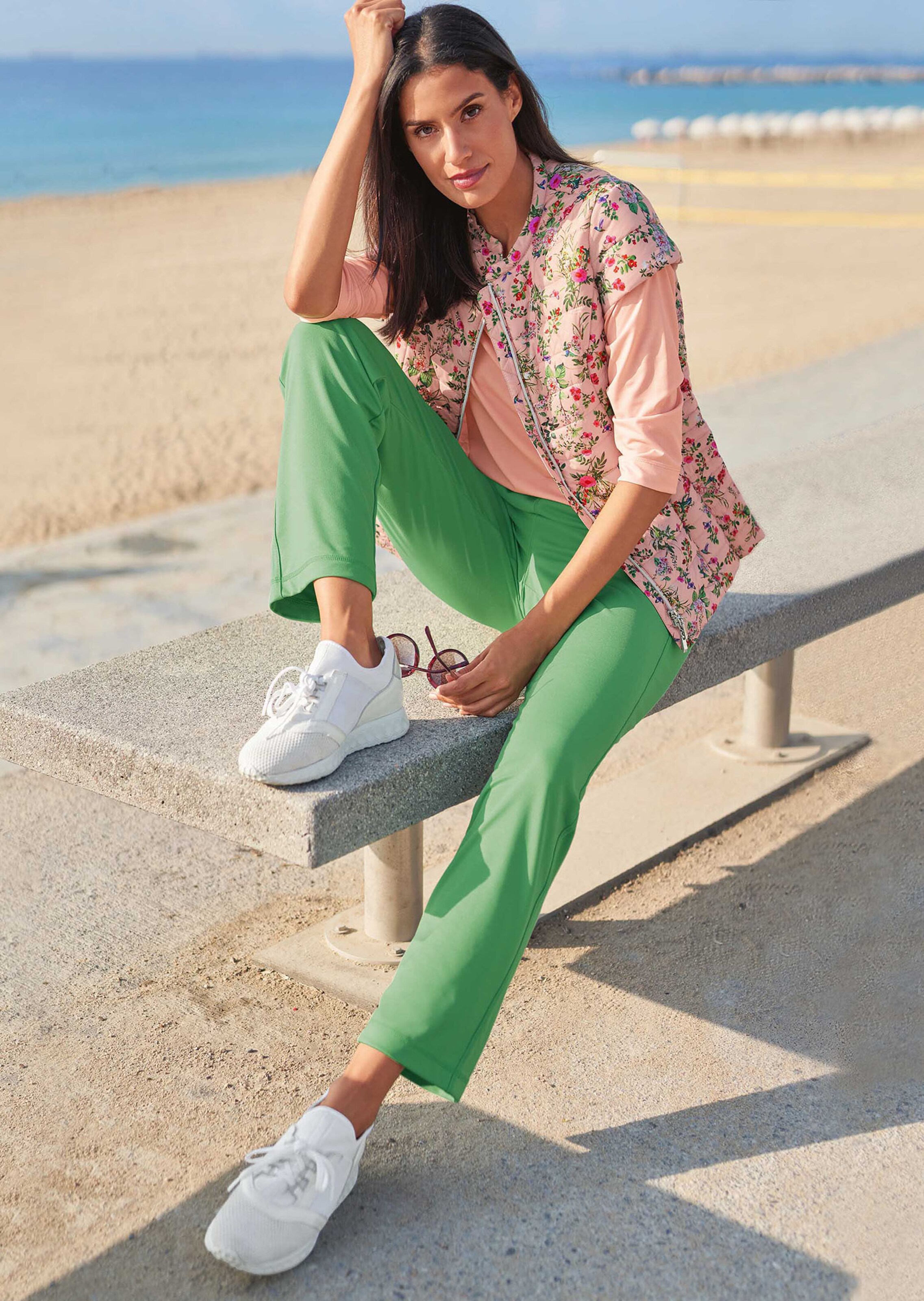 KenmerkenMet elastische tailleband en steekzakken.Zijlengte ca. 103 cm. Zoomwijdte ca. 40 cm.Materiaal94% polyester, 6% elastan