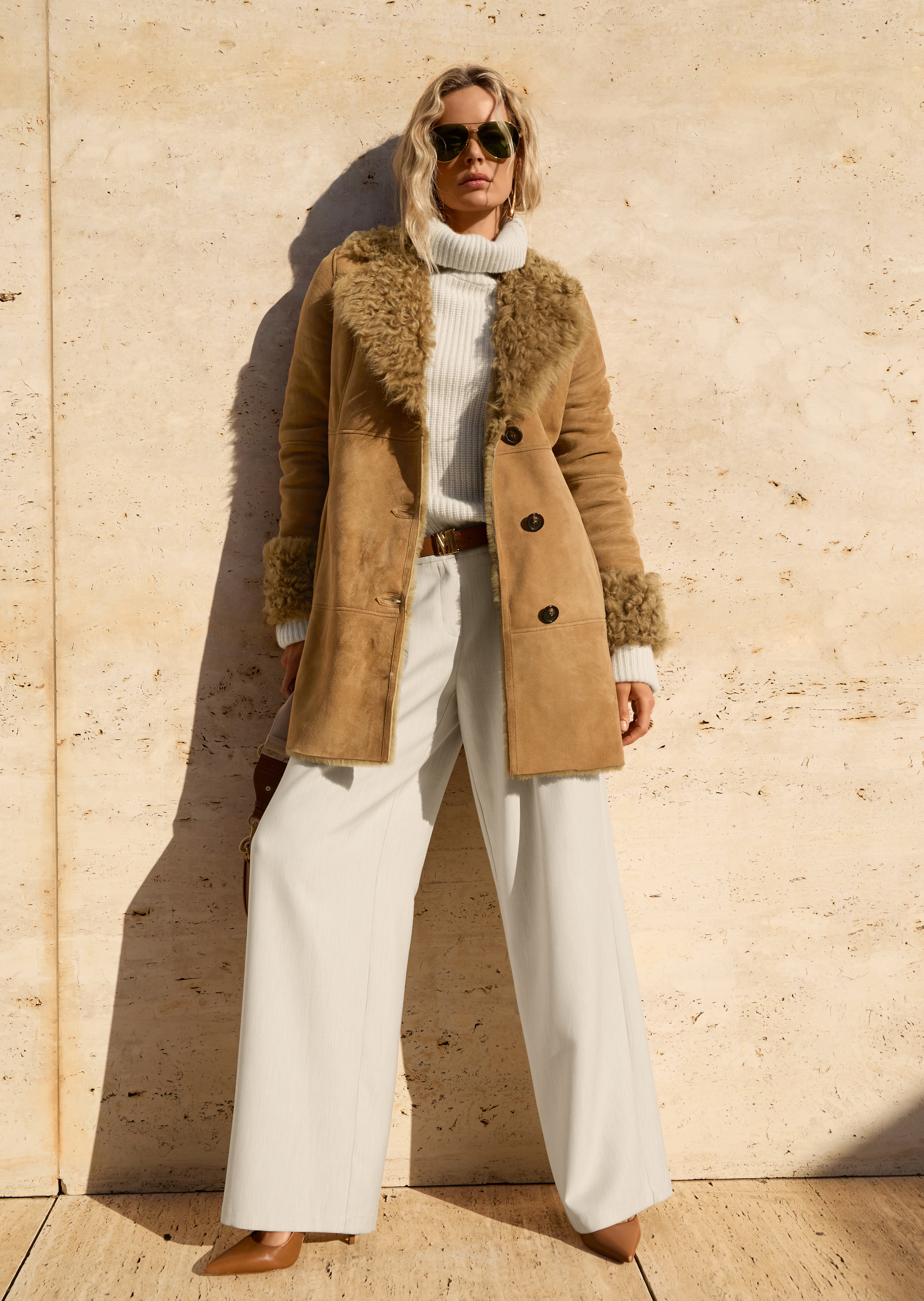 In nonchalant-elegante palazzo-stijl met wijde pijpen. De comfortabele stretchkwaliteit voelt prettig aan. De gevormde tailleband valt comfortabel rond de heupen. Met schuine steekzakken.