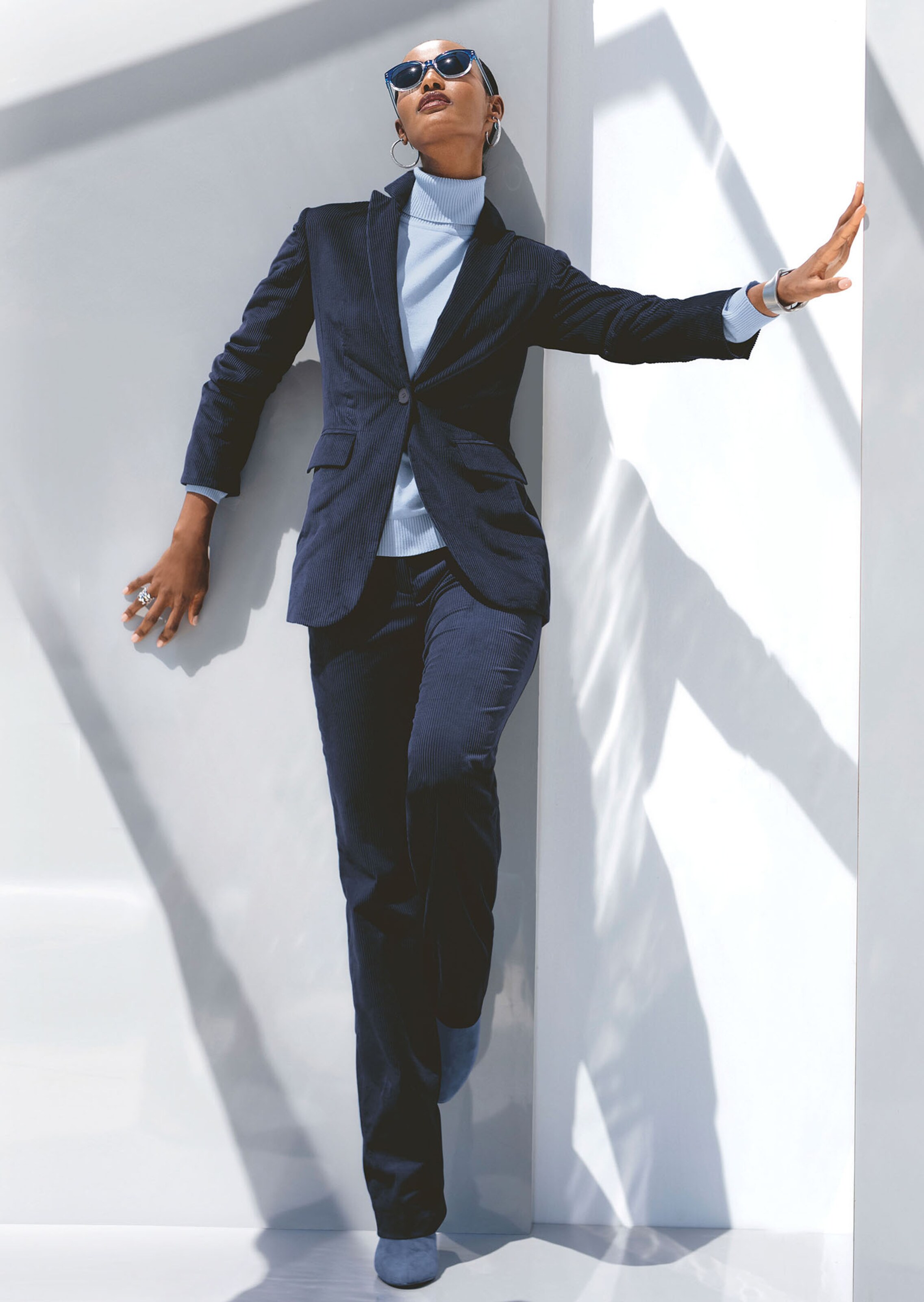 Brede corduroy viert een toprevival. Smal gesneden, licht getailleerd model met strekkende reverskraag, sierborstzakje, gepaspeleerde klepzakken en dichtgeknoopte mouwsplitjes. Met één knoop te sluiten. Ton sur ton knopen en voering.