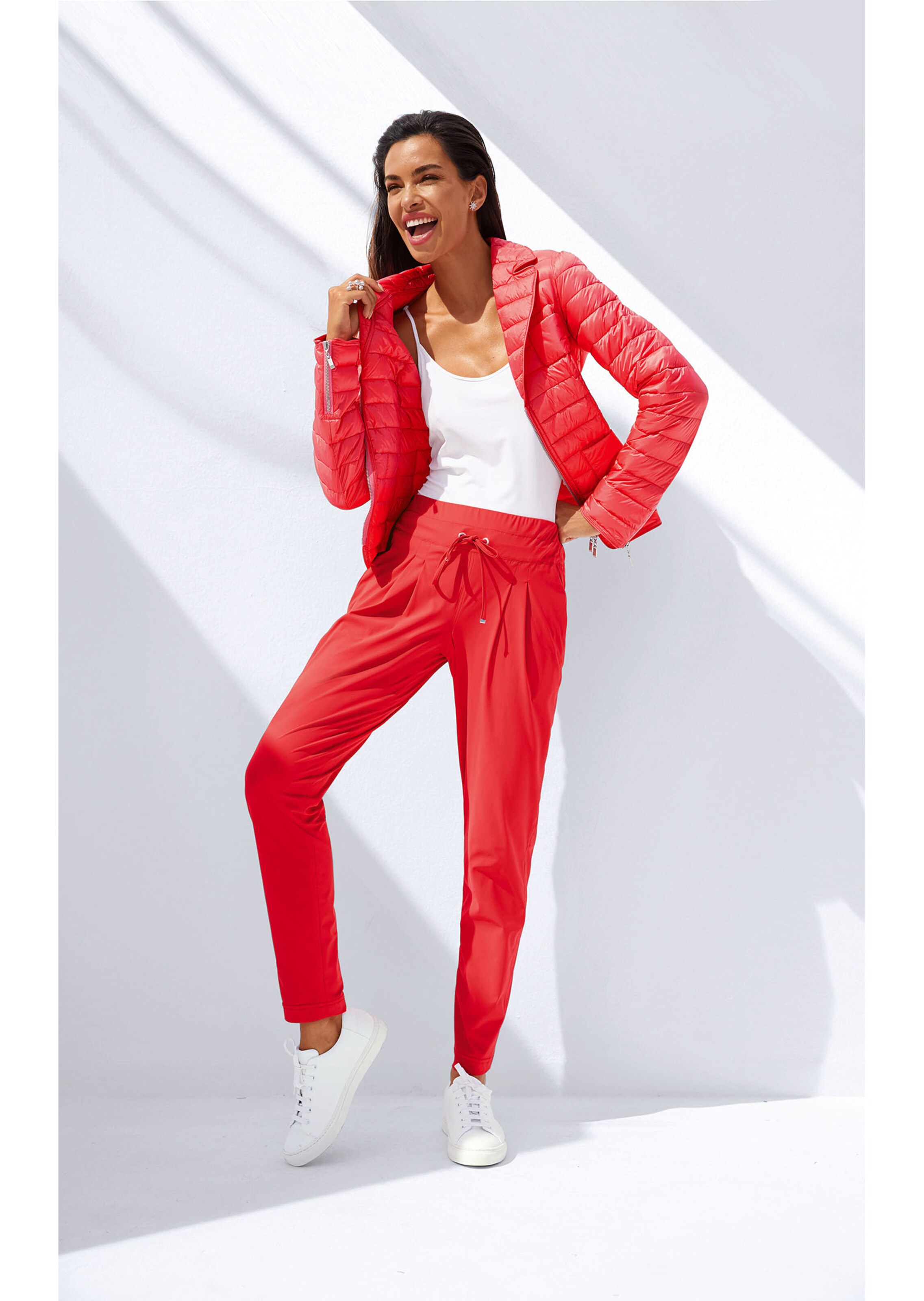 Licht gewatteerd, sandwichstiksel. Getailleerd model met reverskraag, lange mouwen en opgestikte zakken. 2-weg ritssluiting en mouwritssluiting met logo.
