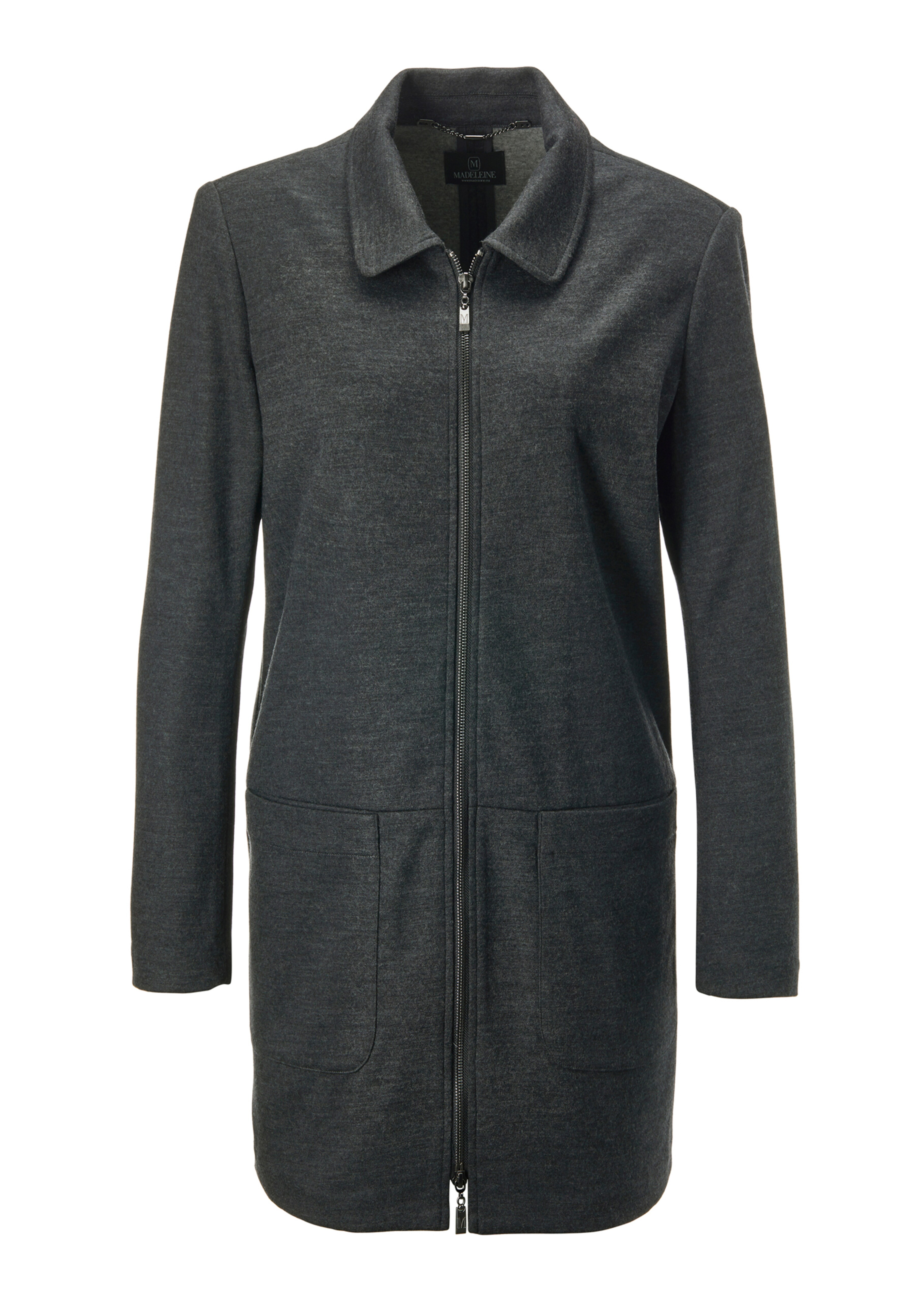 Van een hoogwaardige mix van gekookte wol. Aangenaam lichte, lange jas in decent oversized model met om te vouwen kraag, doorlopende 2-weg-rits, lange mouwen en opgestikte zakken.