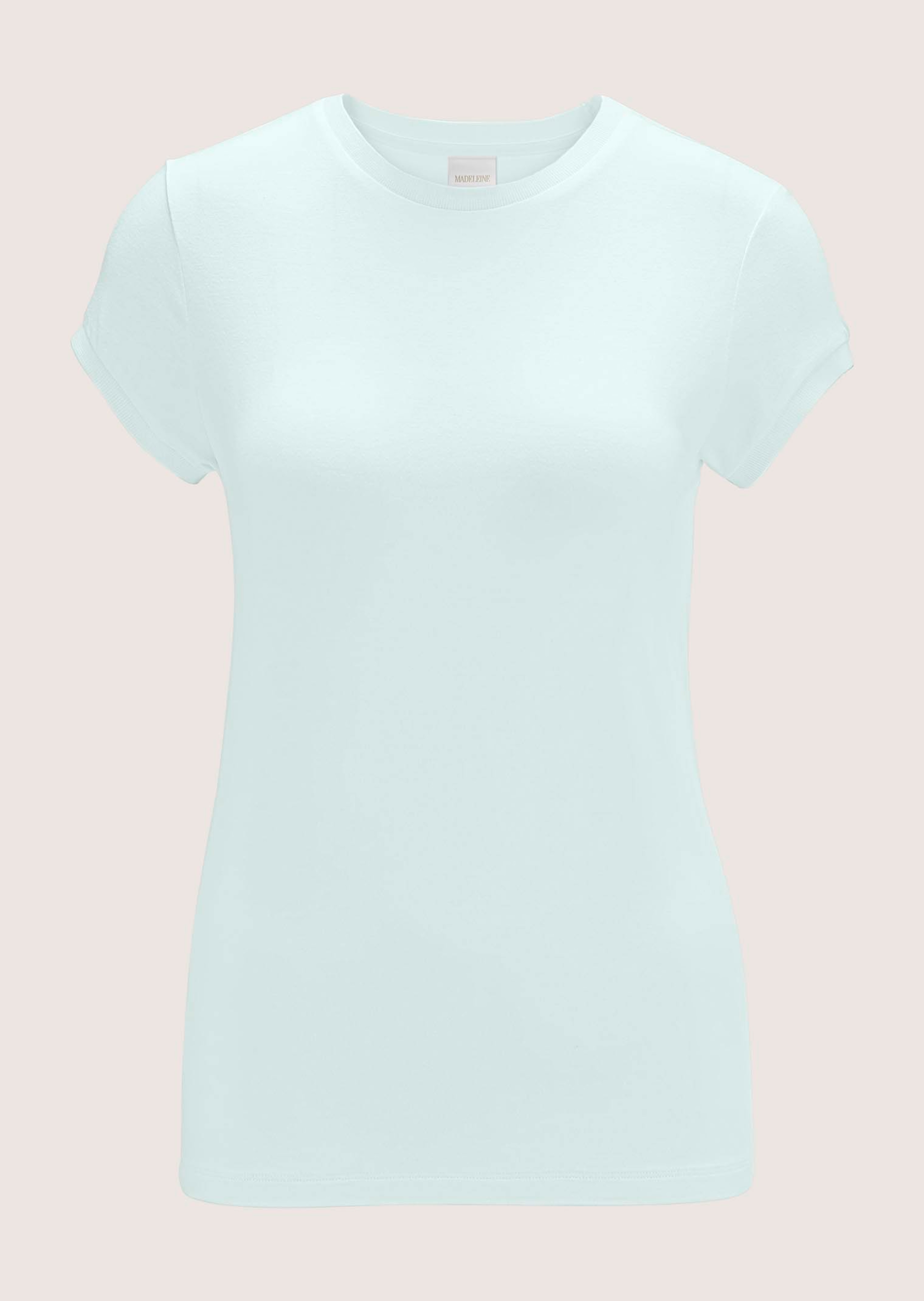 Van zacht en soepel vallende stretchjersey. Vrouwelijke, getailleerde lijn met ribboordjes langs de ronde hals en kleine kapmouwtjes.