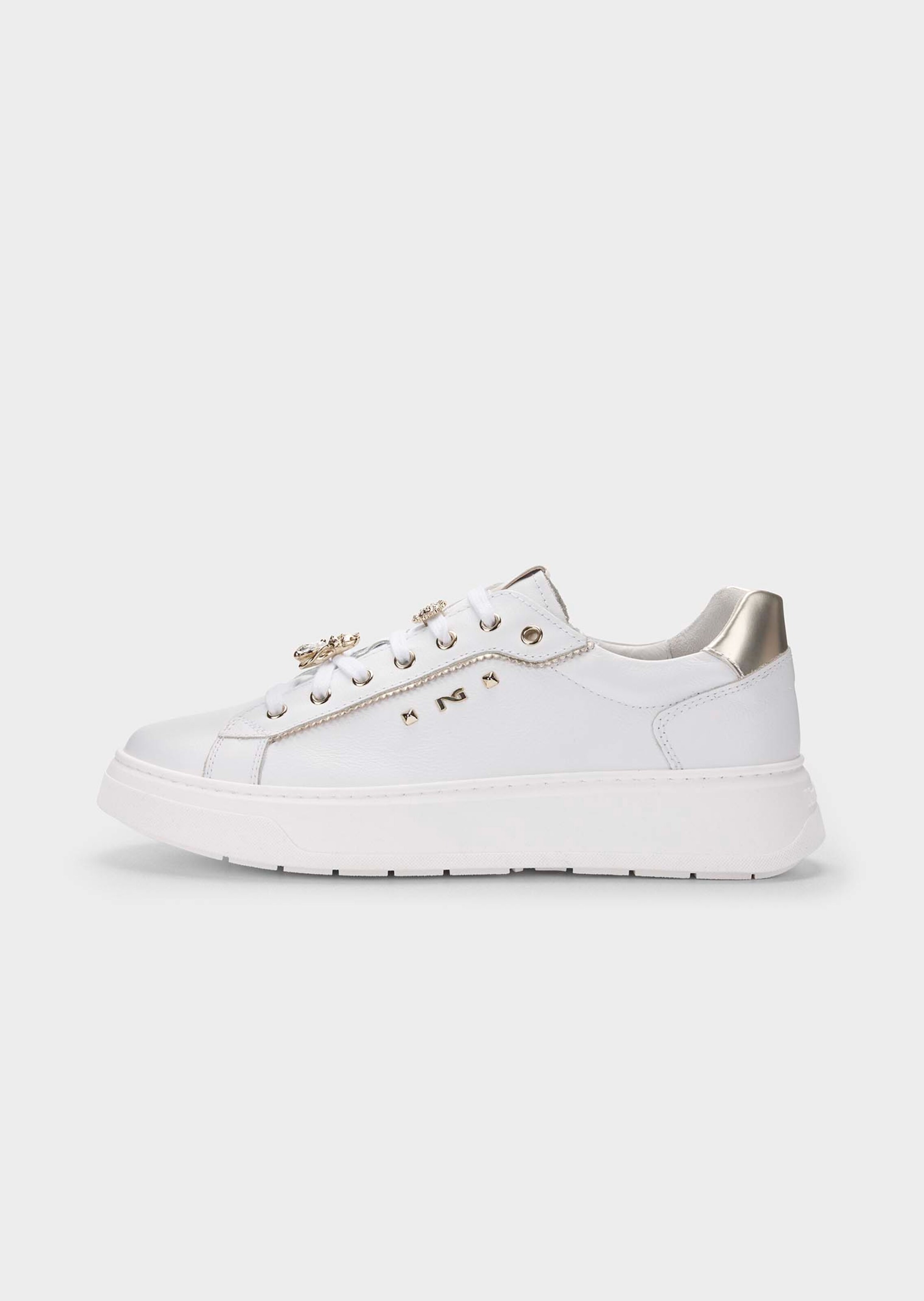 Gemaakt van leer met metallic details, decoratieve elementen en uitneembaar voetbed.
